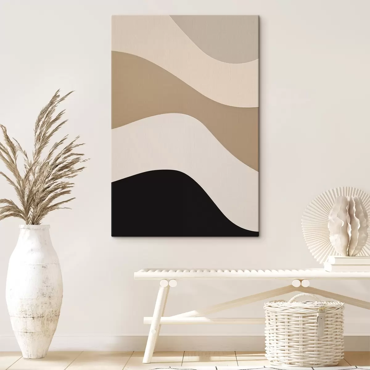 Schilderij Abstracte golven in beige en zwart Art. s44687