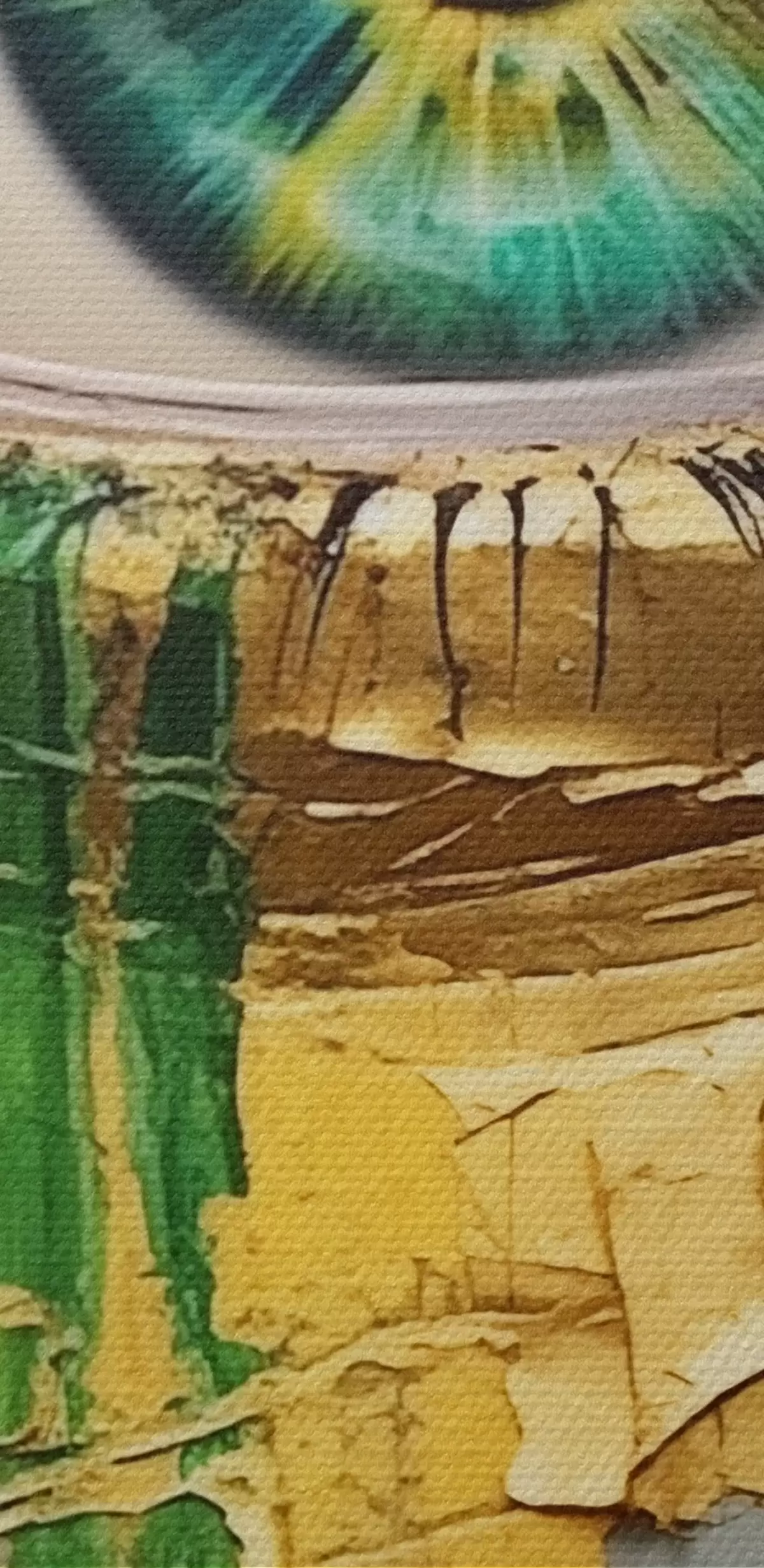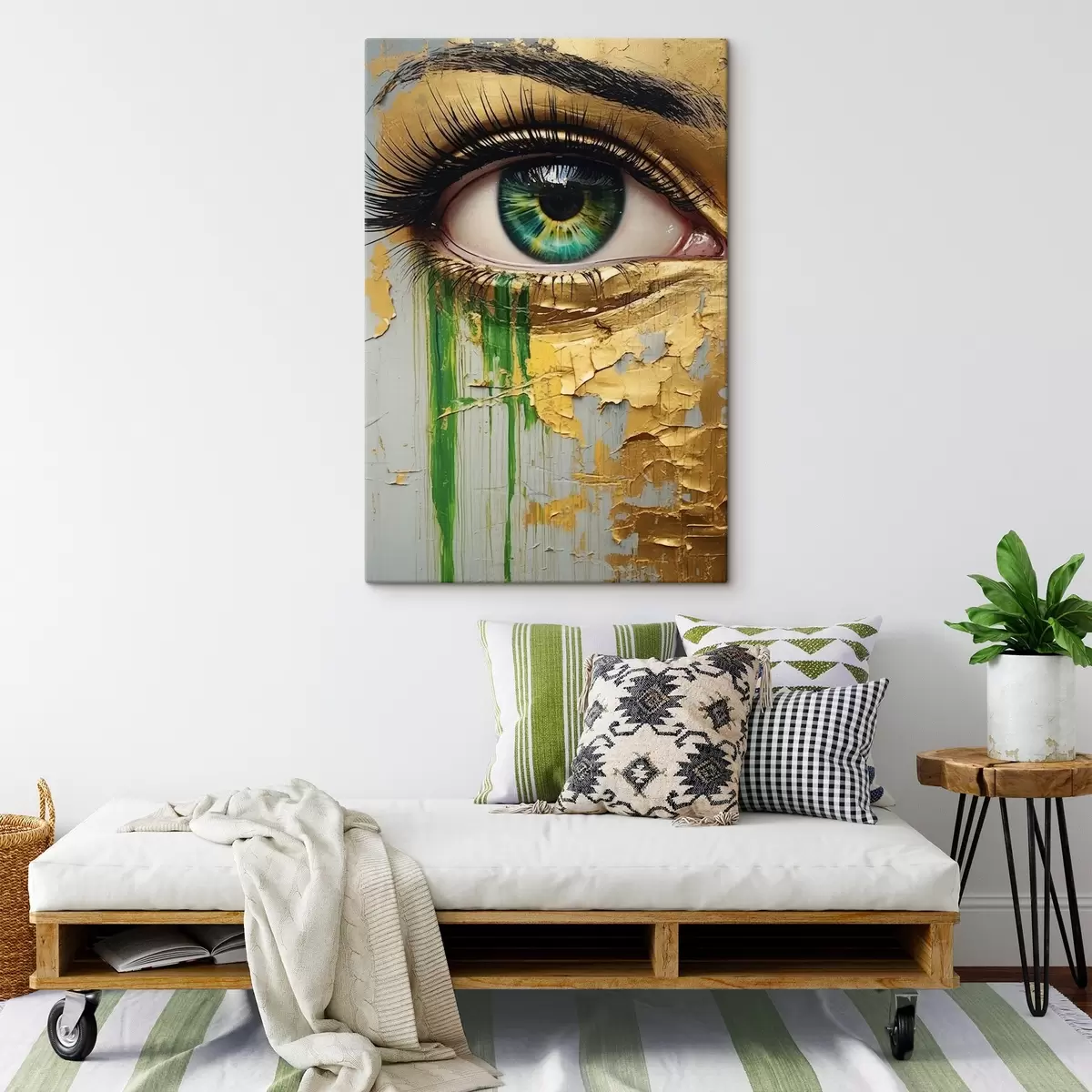 Schilderij Groen oog op de achtergrond van gebarsten verf Art. s44690