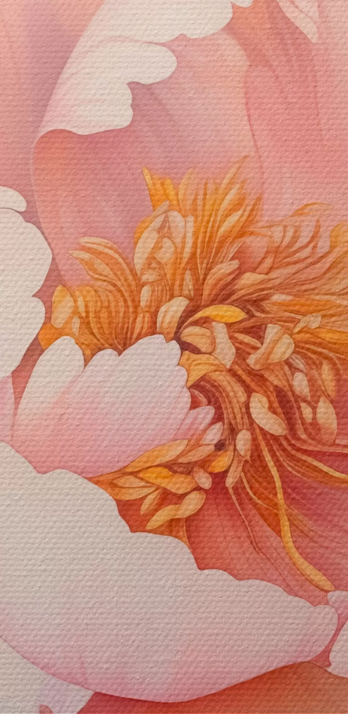 Het schilderij kan direct na ontvangst worden opgehangen. Het schilderij wordt opgespannen op een 2 cm breed houten spieraam.