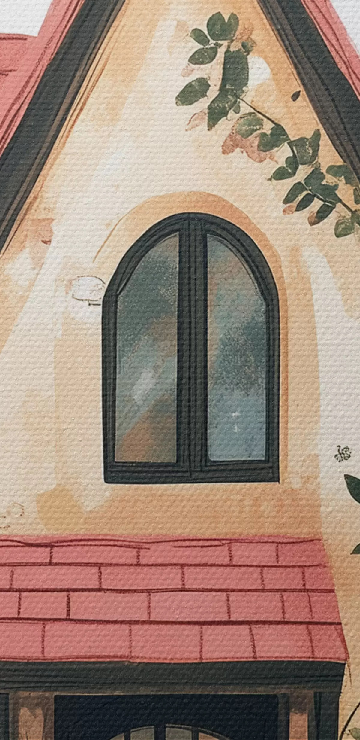 Schilderij Een sprookjeshuis in het bos, rozen, pastelstijl Art. s44718