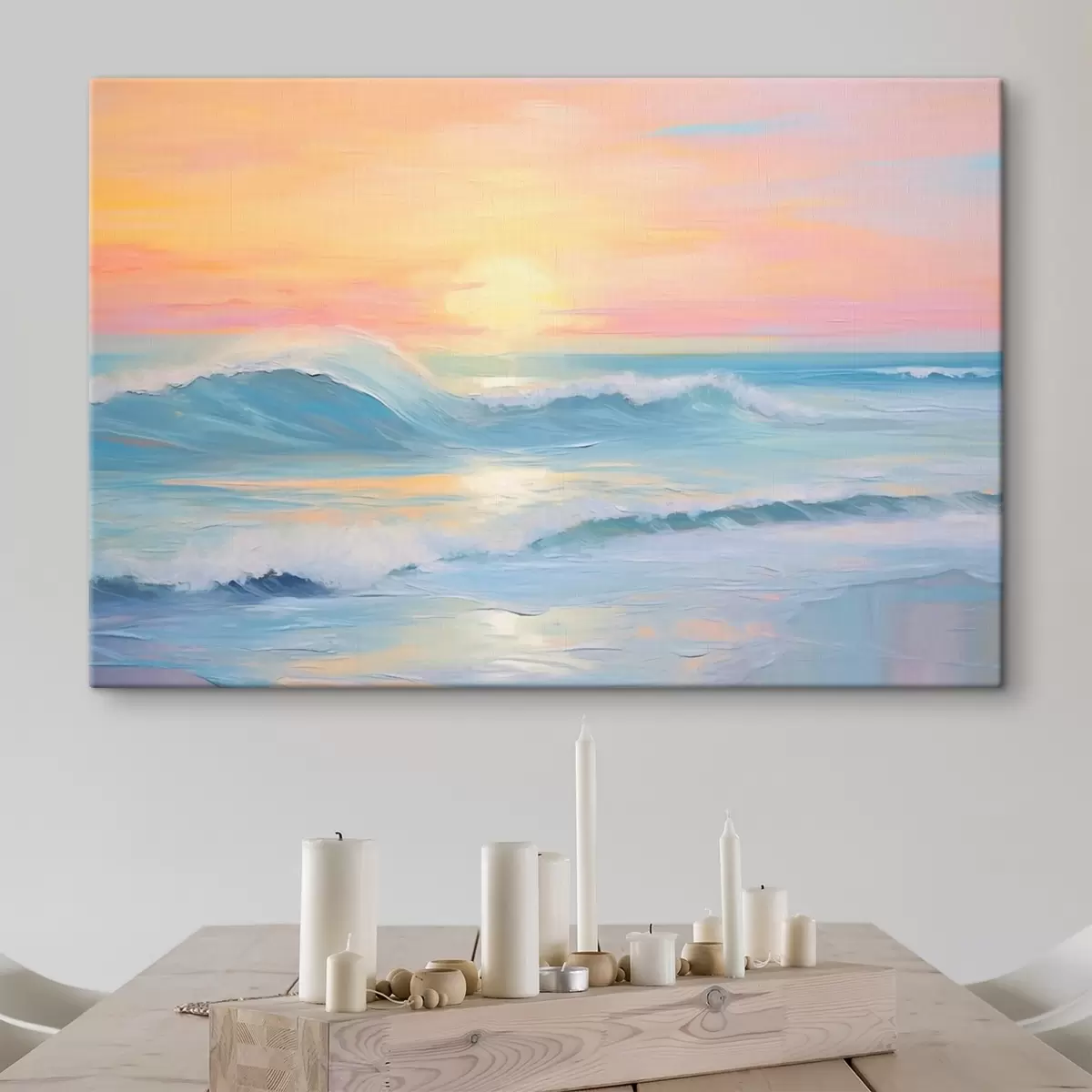 Schilderij Zee golven op de achtergrond van de zonsondergang Art. s44729
