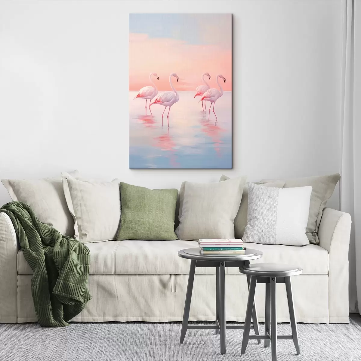 Schilderij Flamingo's in ondiep water bij zonsondergang Art. s44732