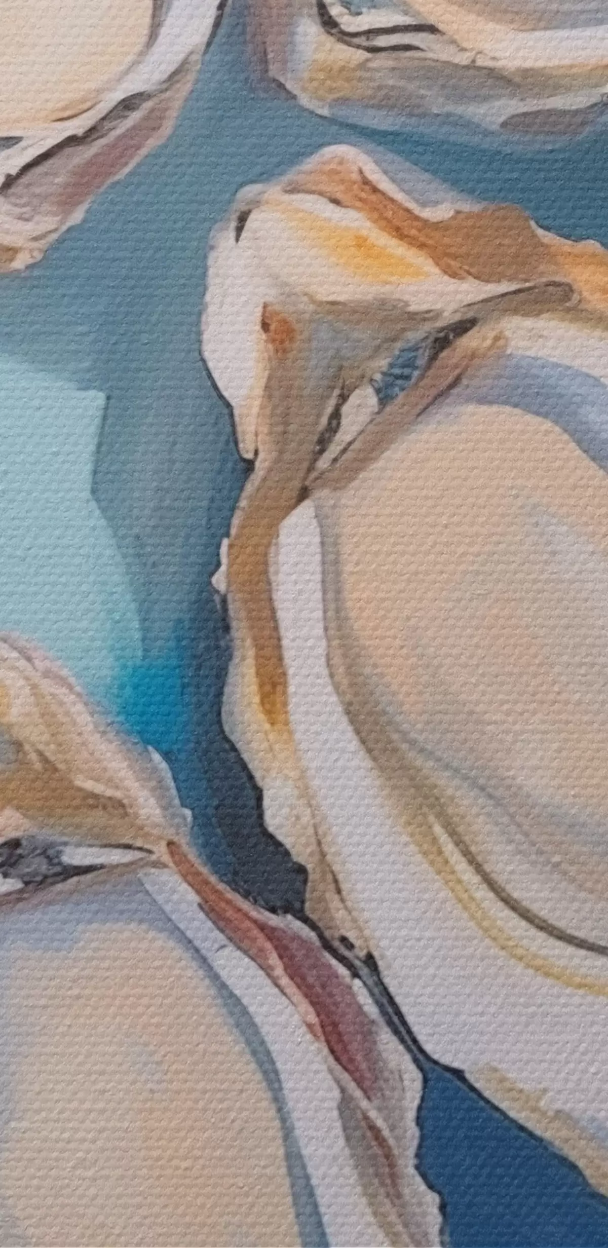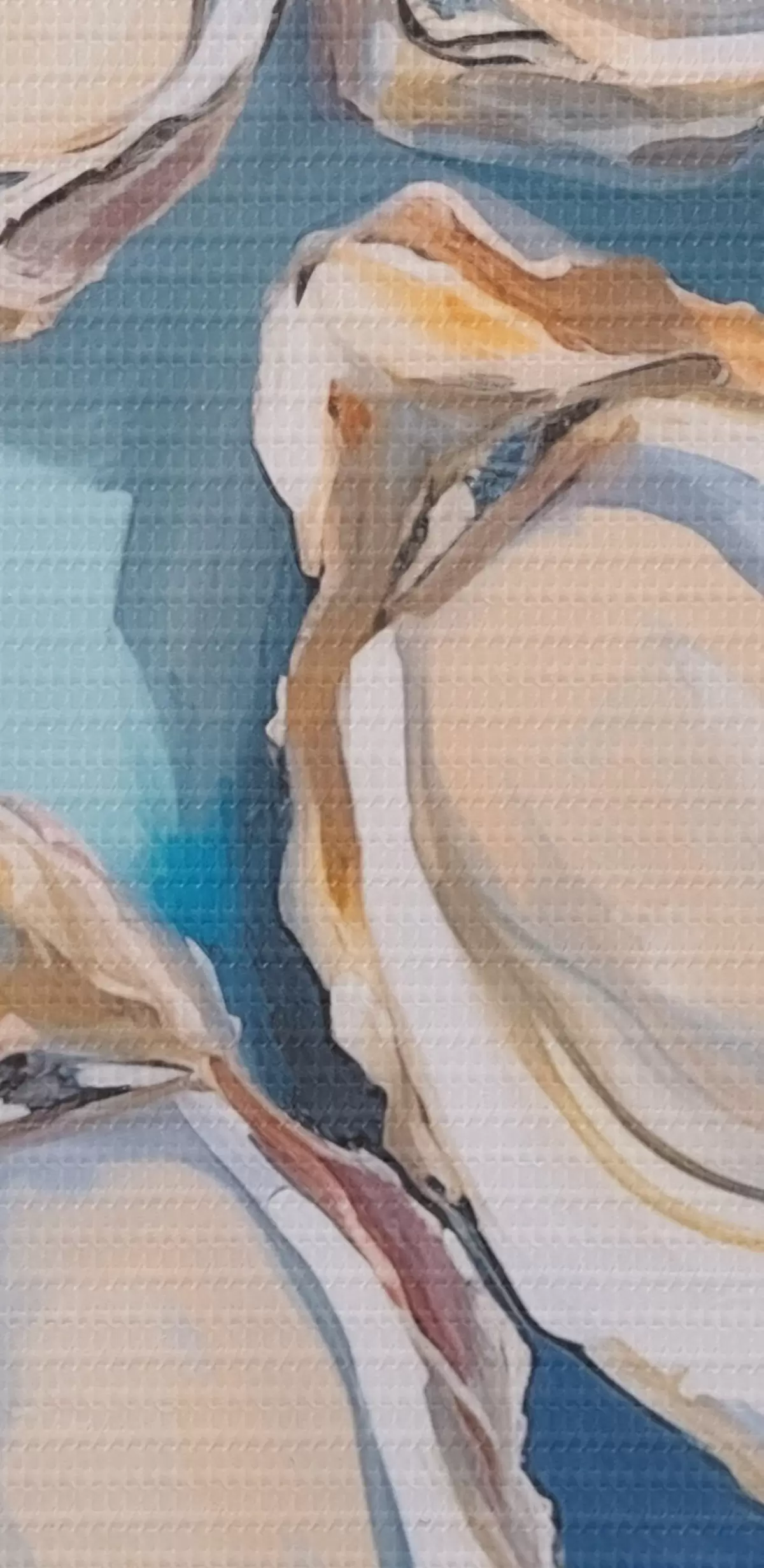 Het schilderij kan direct na ontvangst worden opgehangen. Het schilderij wordt opgespannen op een 2 cm breed houten spieraam.