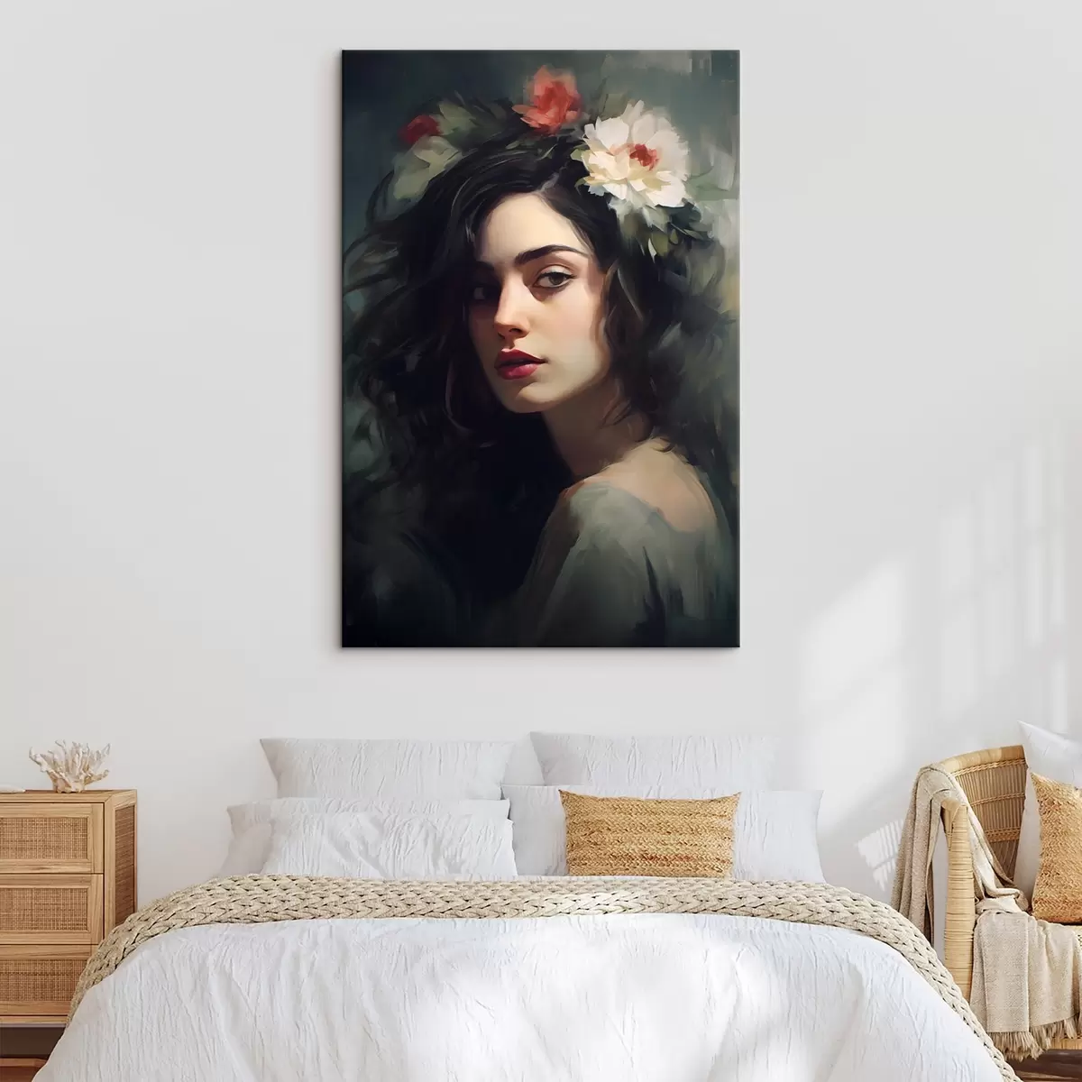 Schilderijen Donkerharige vrouw met een bloemenkroon s44762