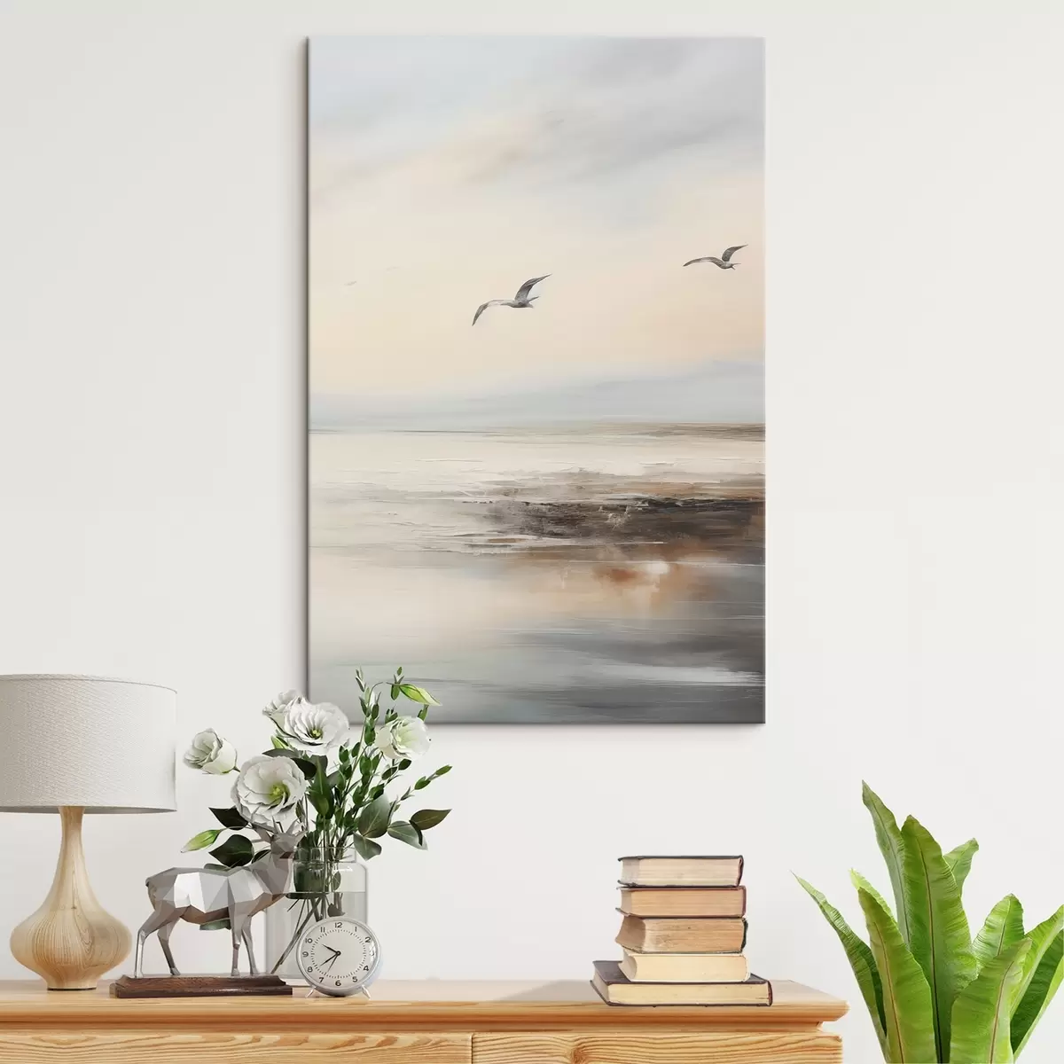 Schilderij Pastel landschap met vliegende meeuwen Art. s44763