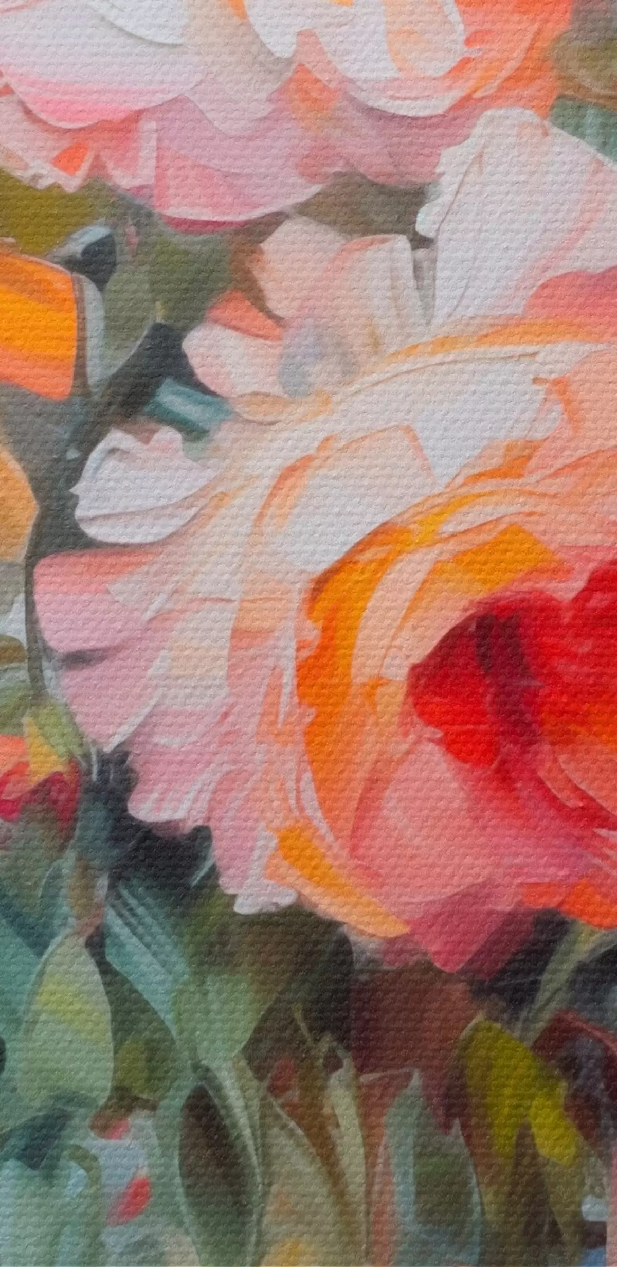 Het schilderij kan direct na ontvangst worden opgehangen. Het schilderij wordt opgespannen op een 2 cm breed houten spieraam.