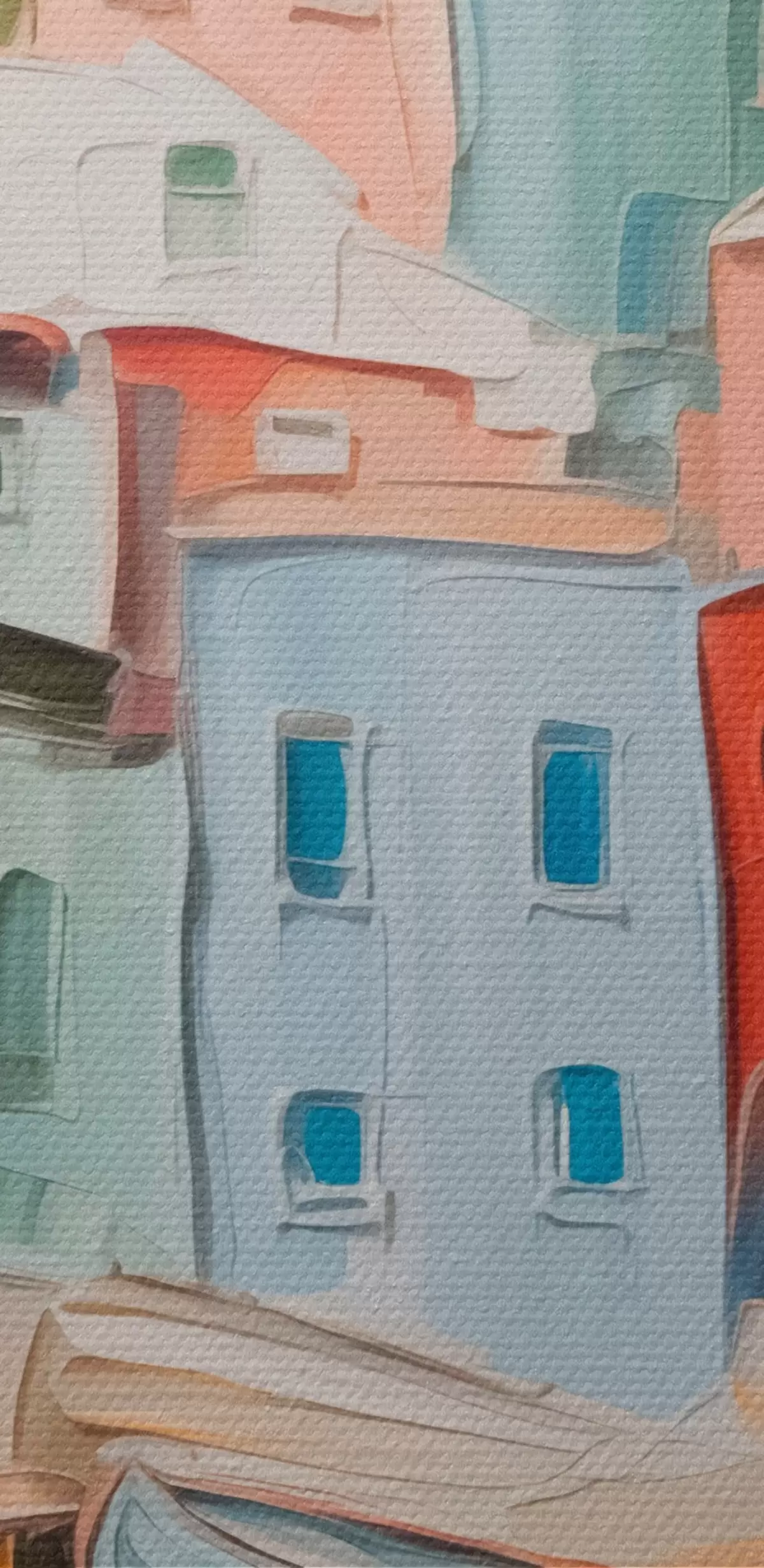 Het schilderij kan direct na ontvangst worden opgehangen. Het schilderij wordt opgespannen op een 2 cm breed houten spieraam.