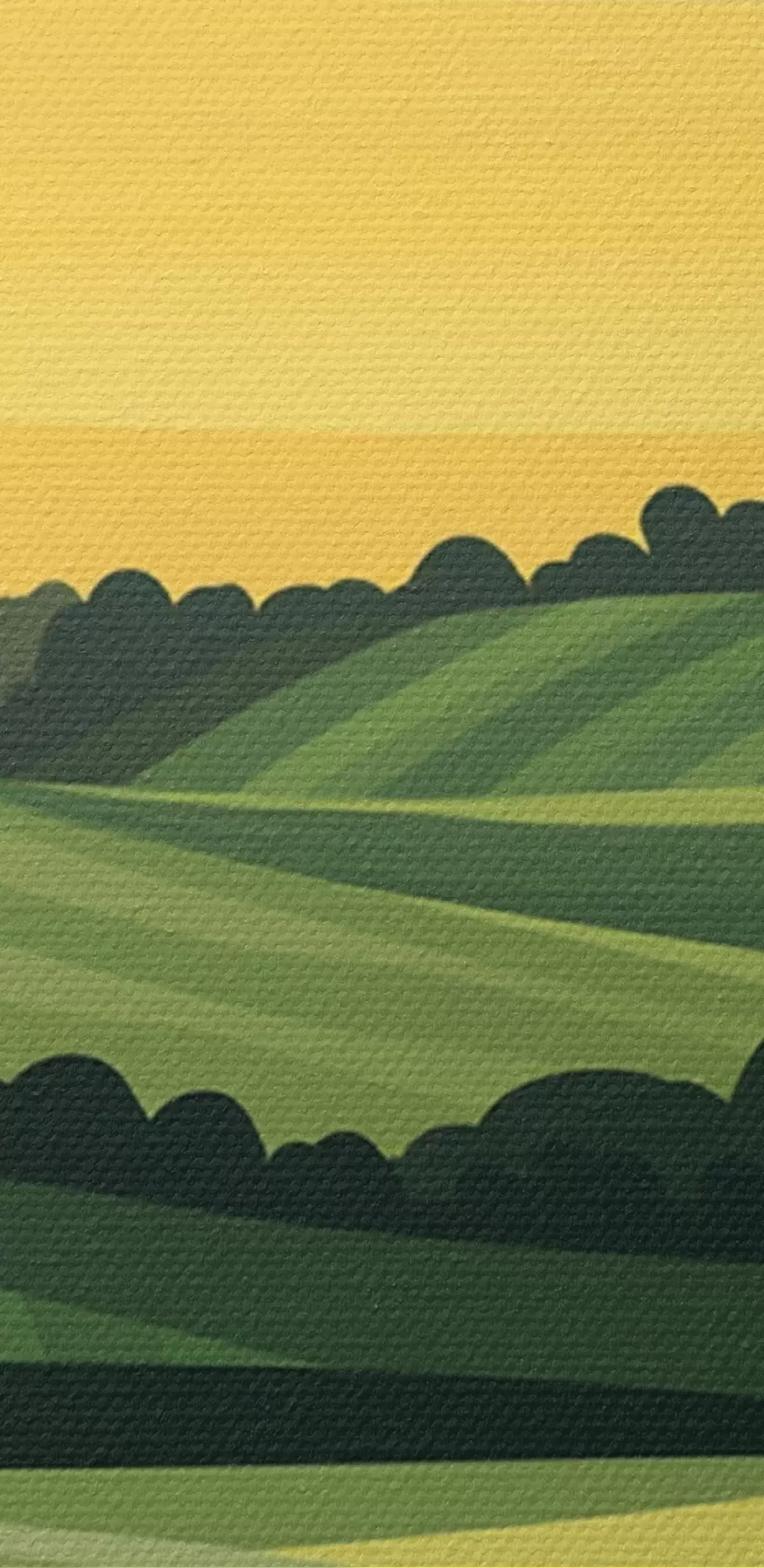 Schilderij Abstracte landschappen met heuvels en zonsondergang Art. s44785