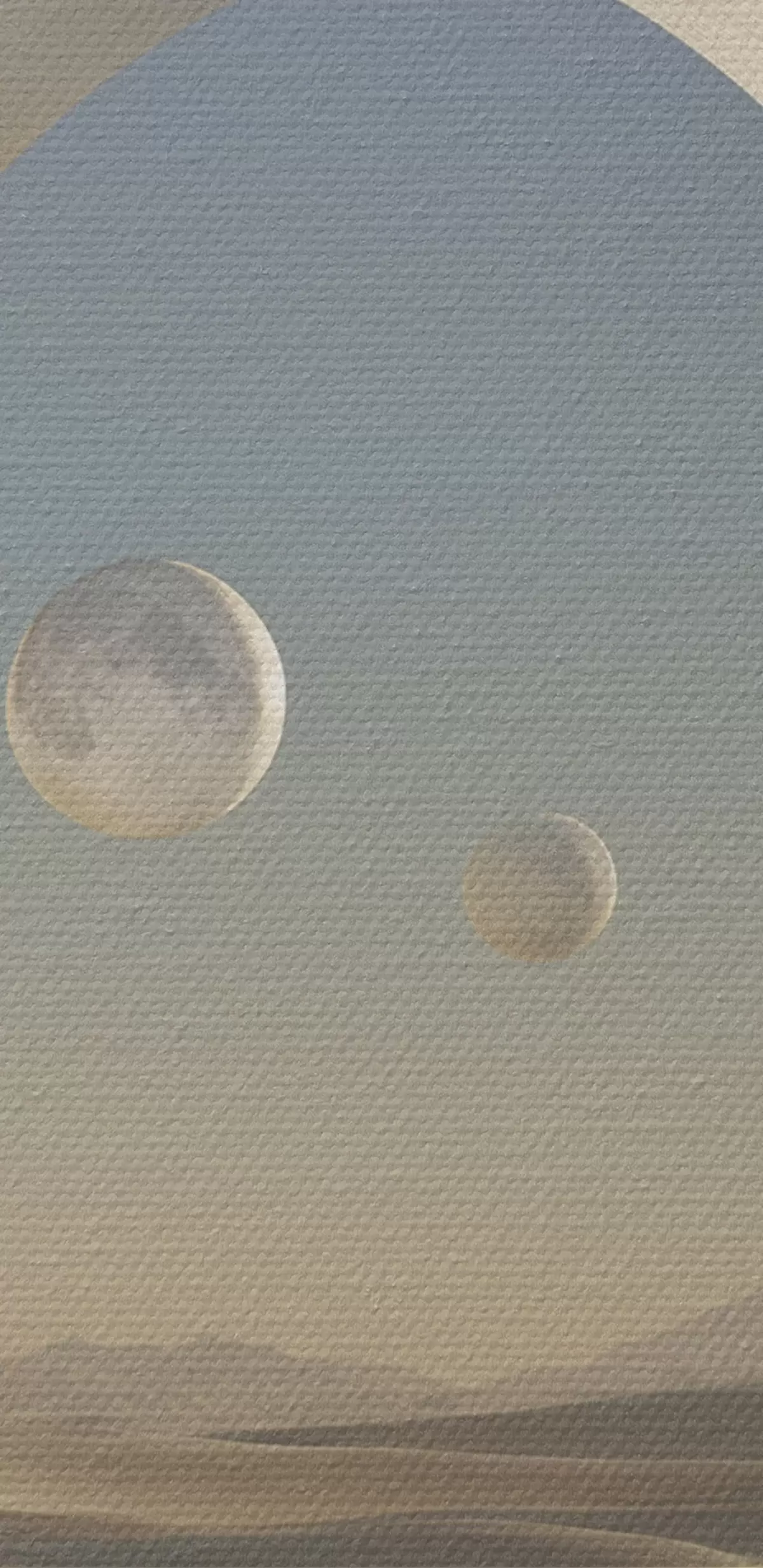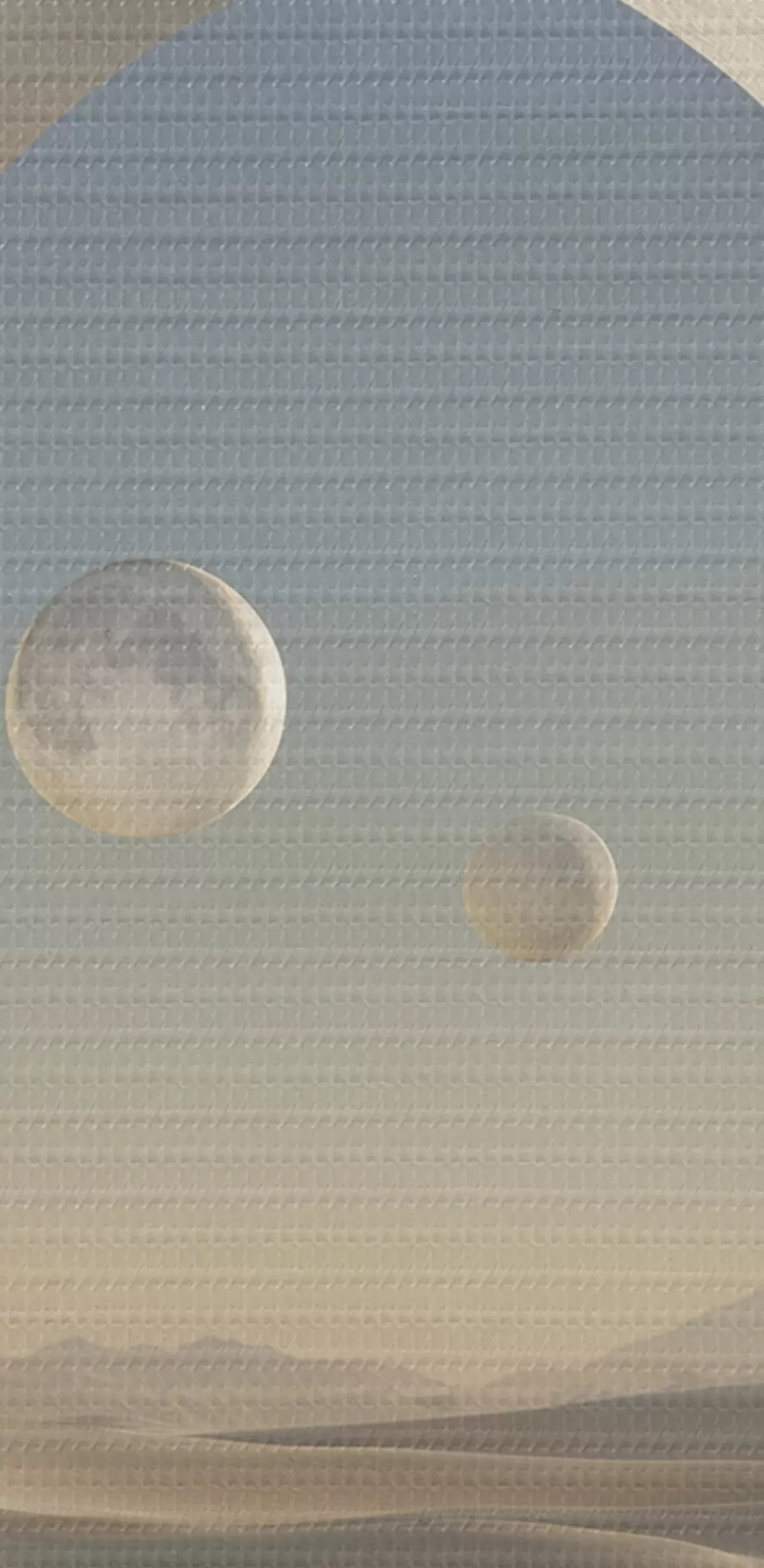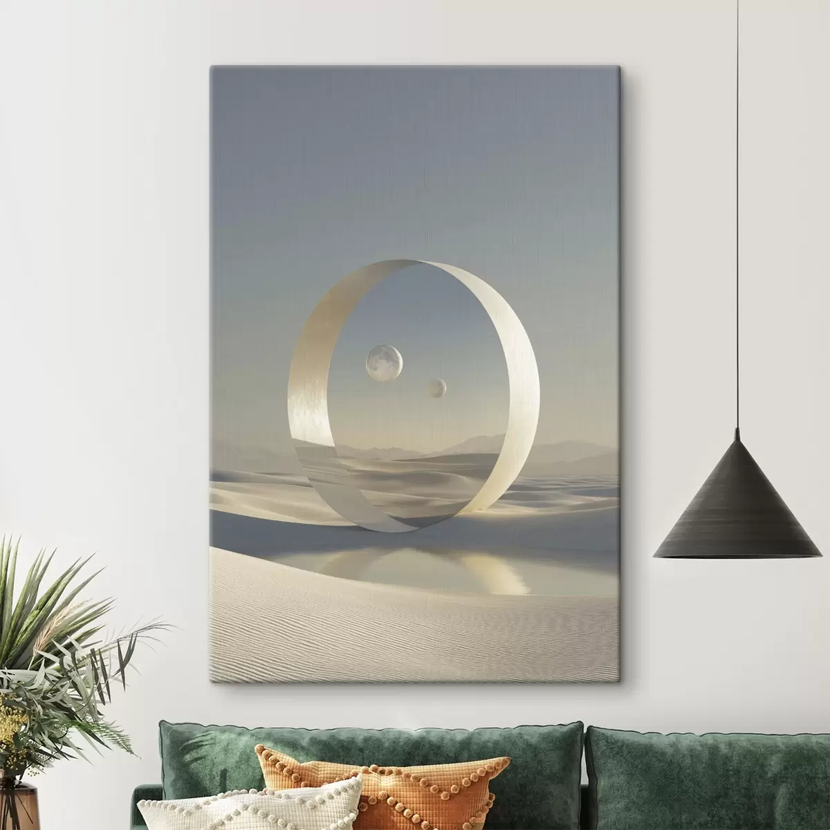 Schilderij Futuristisch landschap met duinen en planeten Art. s44791