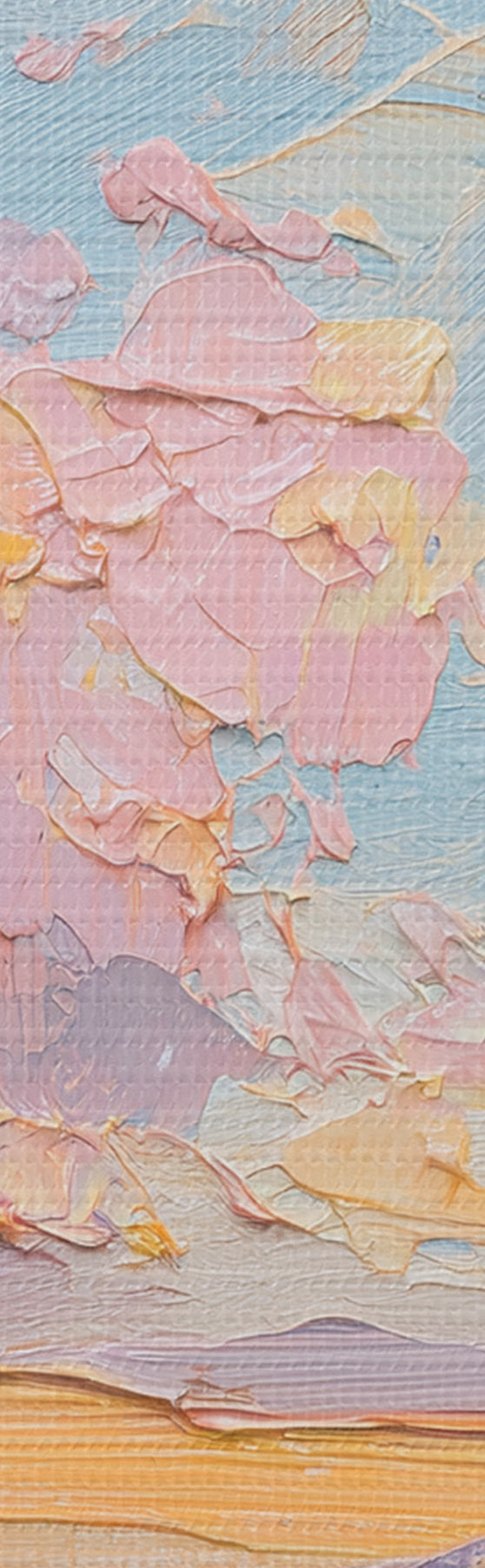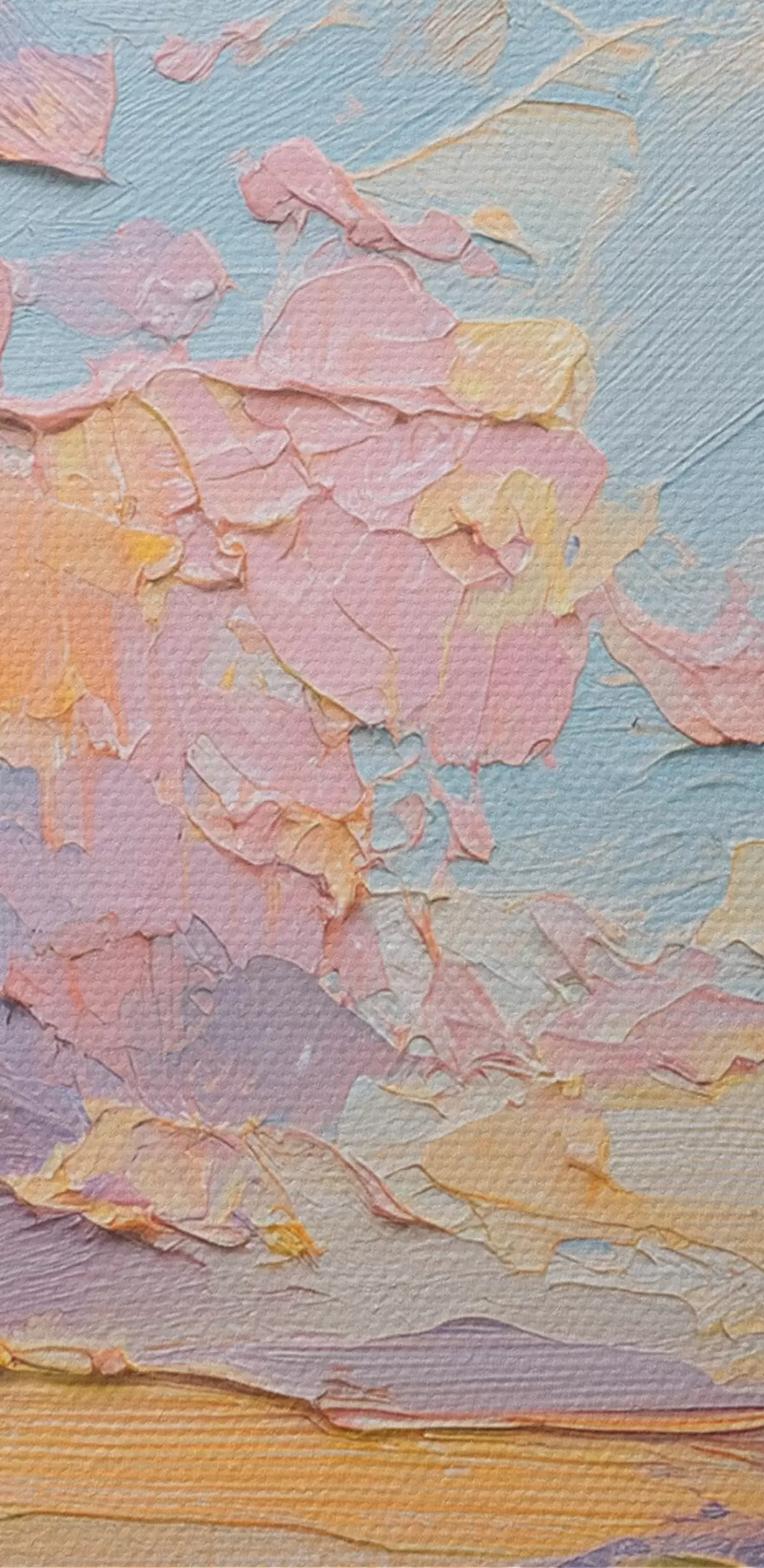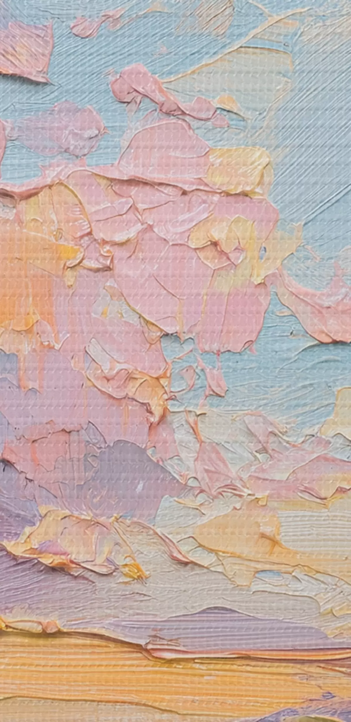 Het schilderij kan direct na ontvangst worden opgehangen. Het schilderij wordt opgespannen op een 2 cm breed houten spieraam.
