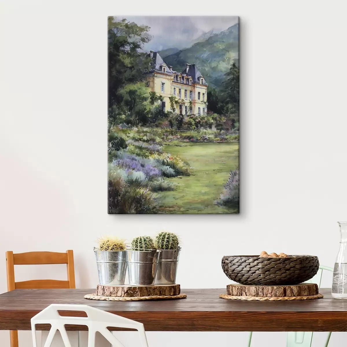 Schilderij Frans kasteel omringd door een tuin met lavendel Art. s44797