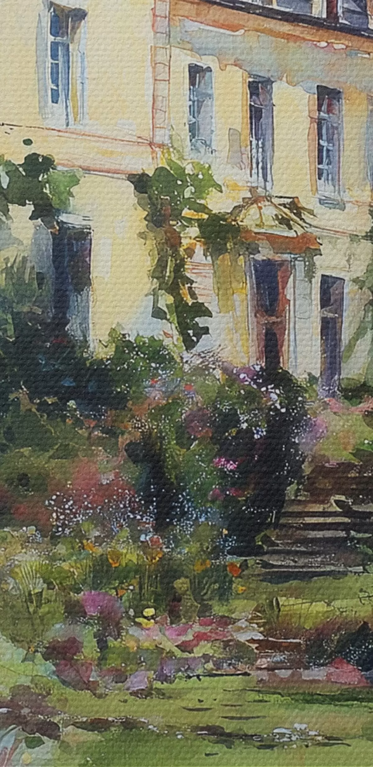 Schilderij Frans kasteel omringd door een tuin met lavendel Art. s44797