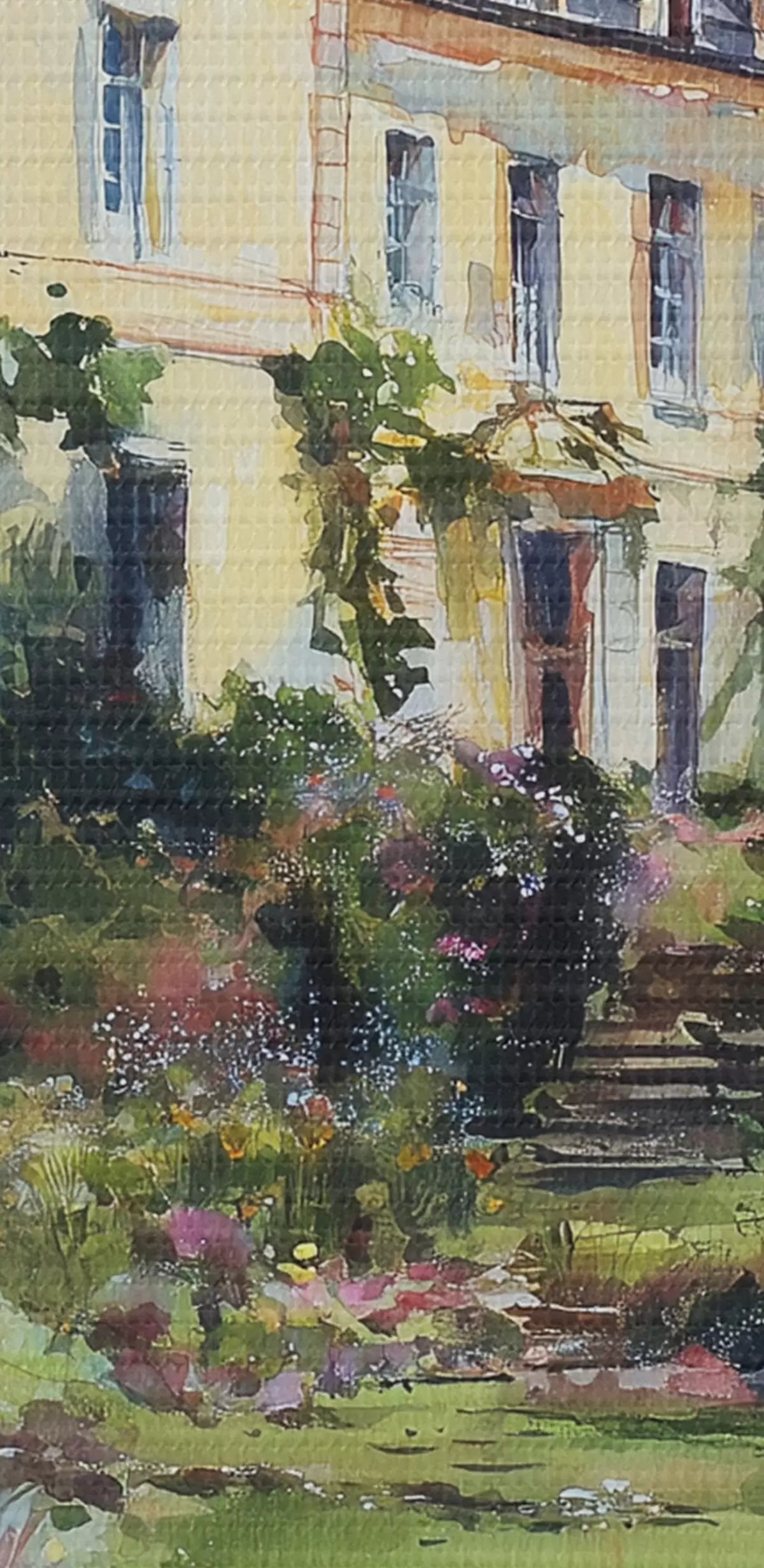 Het schilderij kan voorzichtig worden schoongeveegd met een droge zachte doek of spons; het wordt niet aanbevolen om natte producten te gebruiken. Het gebruik van een vochtige spons is alleen toegestaan als het schilderij gevernist is.