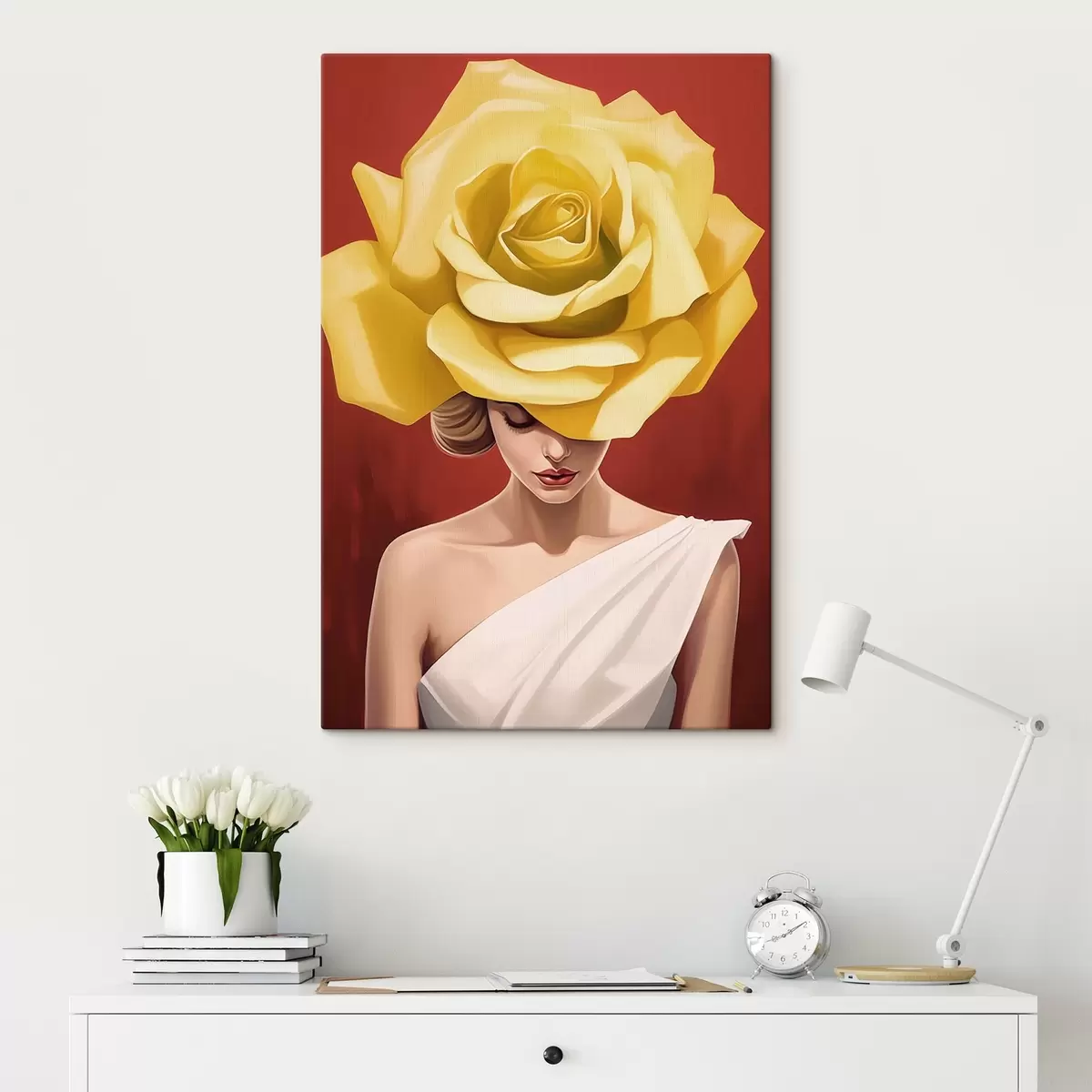 Schilderij Vrouw met gele rozenhoed Art. s44800