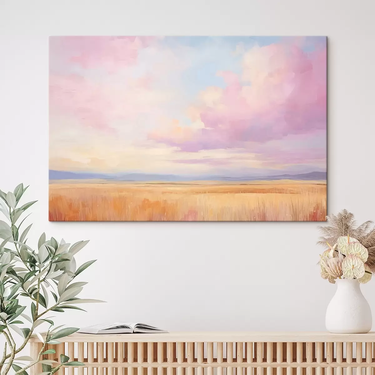 Schilderij Roze lucht boven een veld Art. s44810