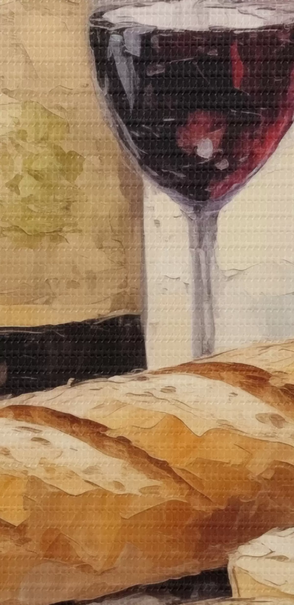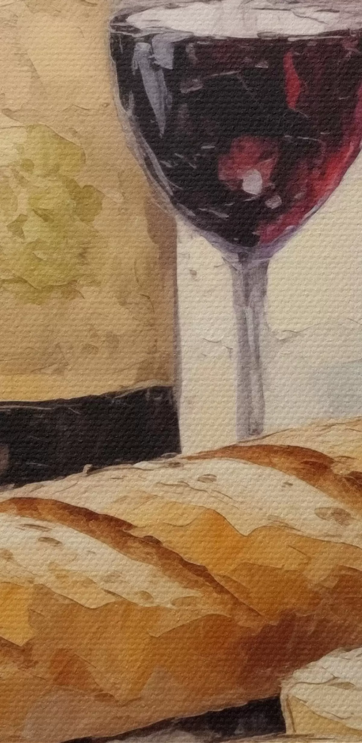 Schilderij Wijn, stokbrood en druiven Art. s44815