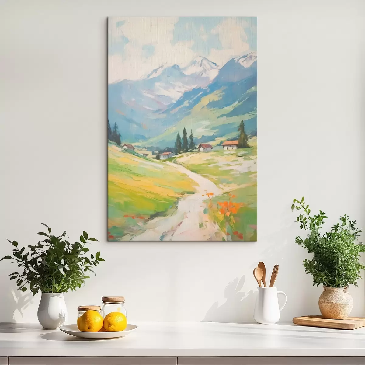 Je kunt het schilderij ophangen aan schroeven. Hiervoor leveren we bevestigingen bij onze foto's, zodat je de foto gemakkelijk kunt ophangen.