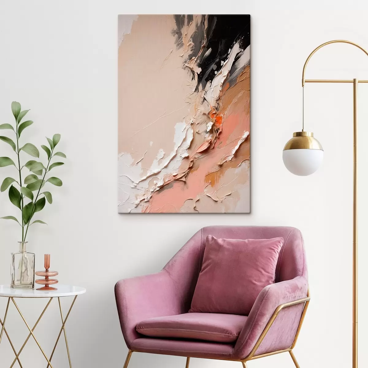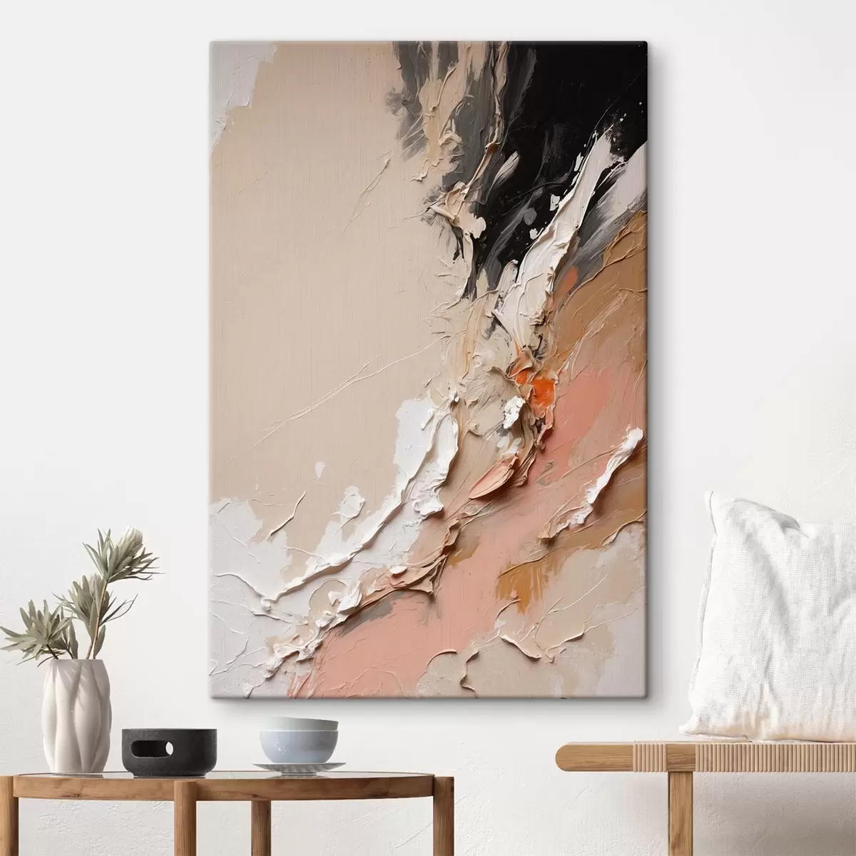 Schilderij Beige en zwarte abstractie met accenten van roze en wit Art. s44875