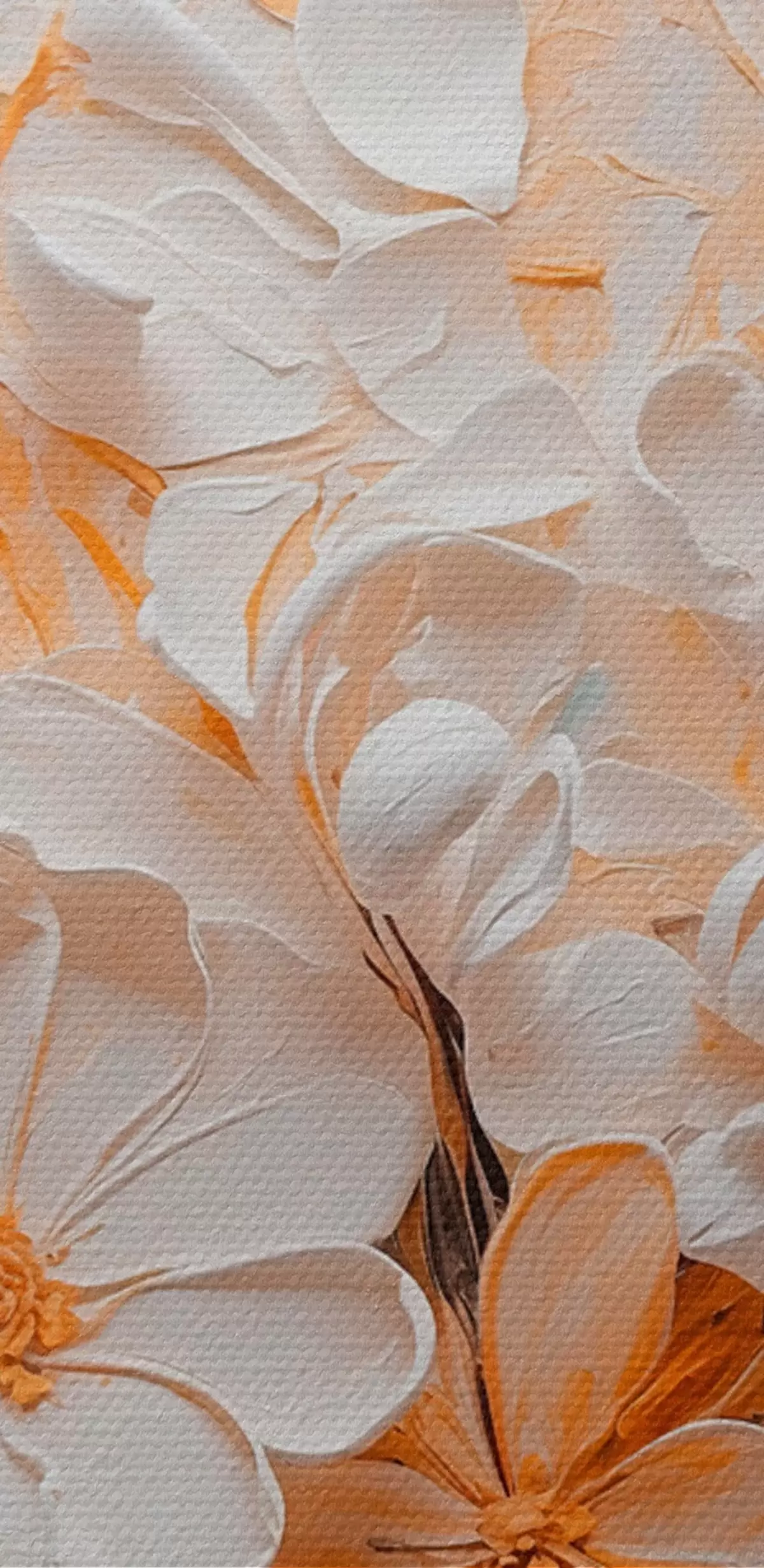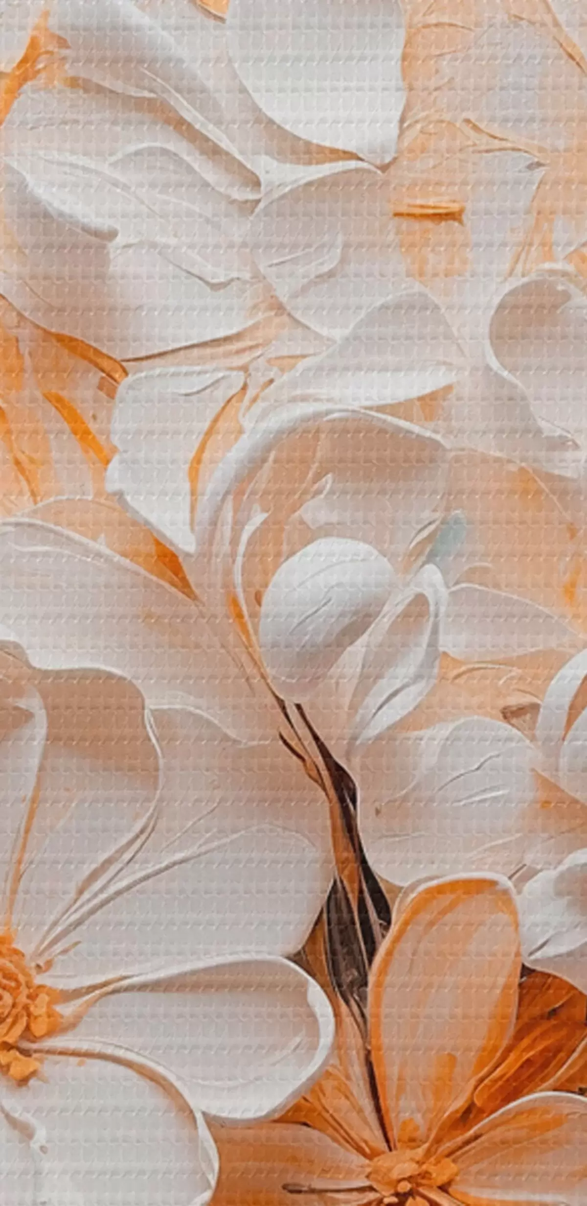 Schilderij Witte en perzikkleurige bloemen op een blauwe achtergrond met pastels Art. s44879