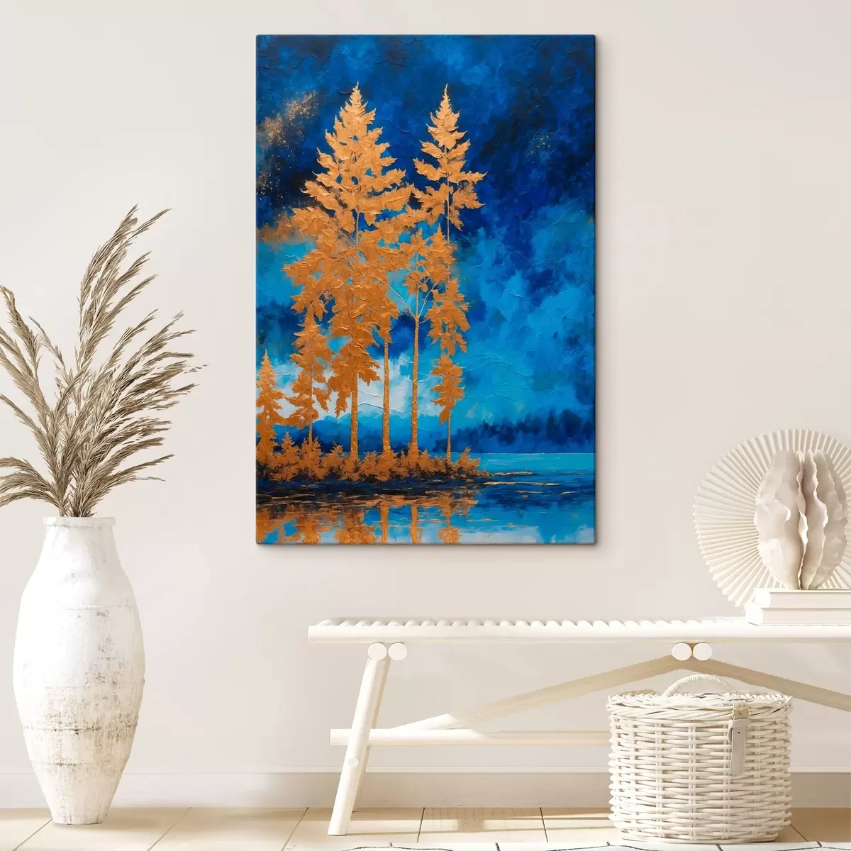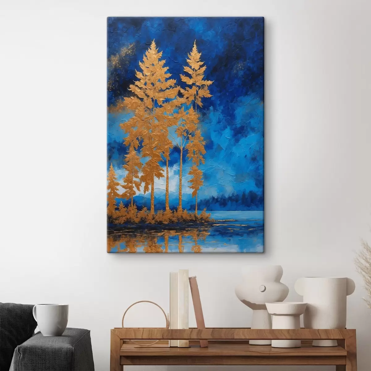 Schilderij Bomen op de achtergrond van nachtelijke hemel in blauwe tinten Art. s44888