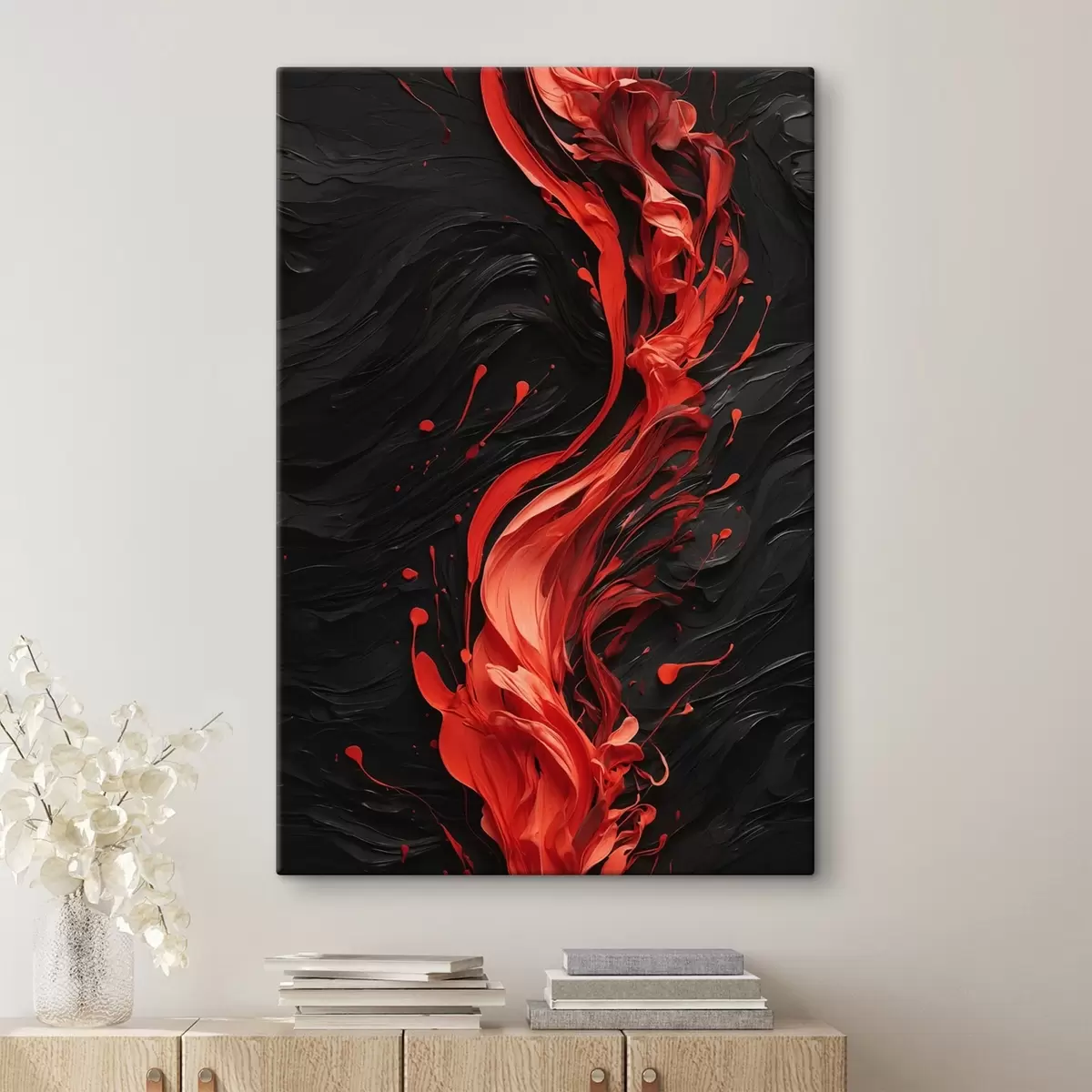 Schilderij Rode verfstroom op zwarte abstracte achtergrond Art. s44889