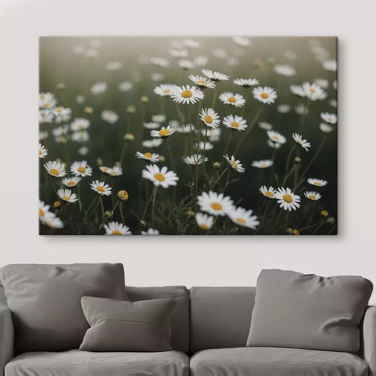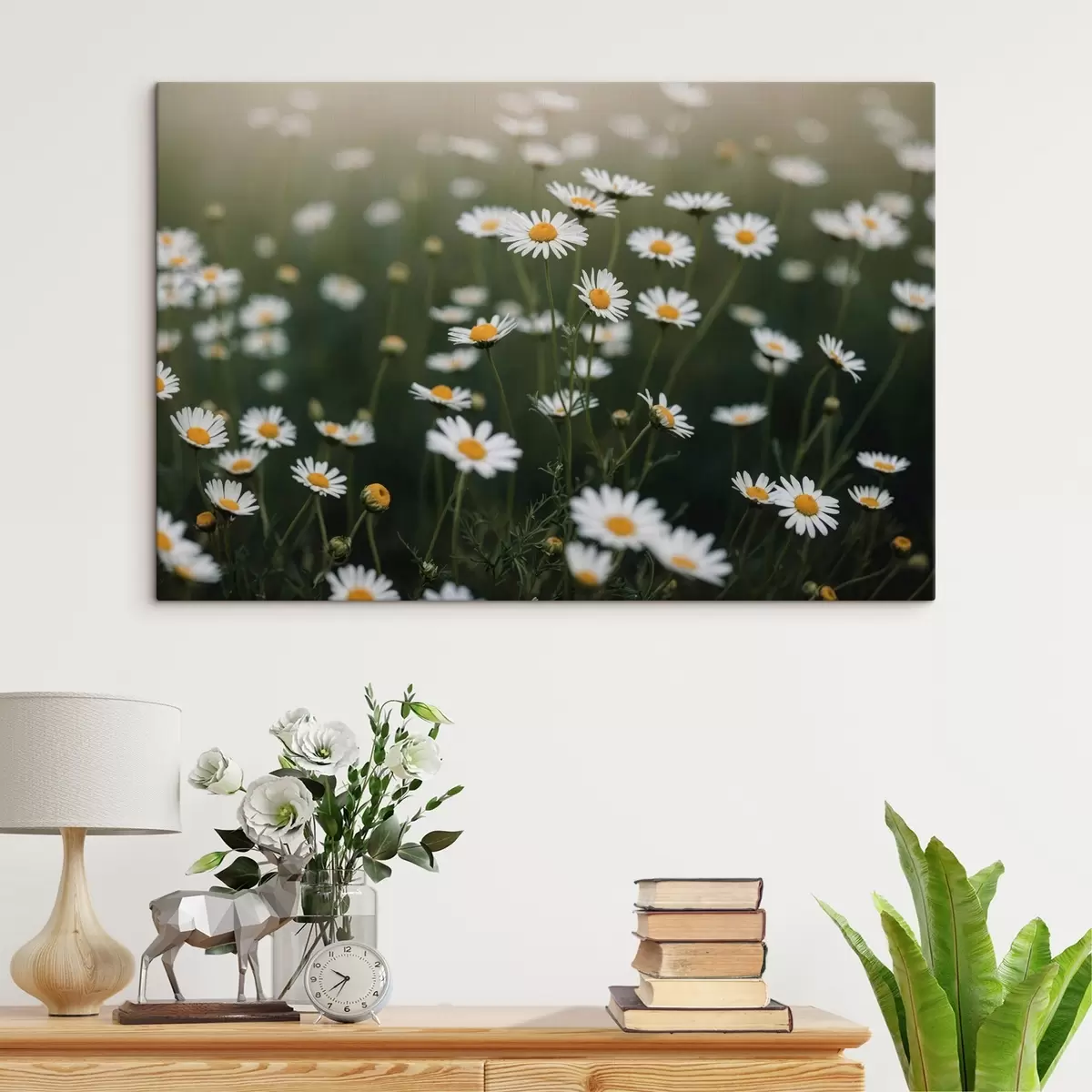 Schilderij Madeliefjesveld met onscherpe groene achtergrond Art. s44898