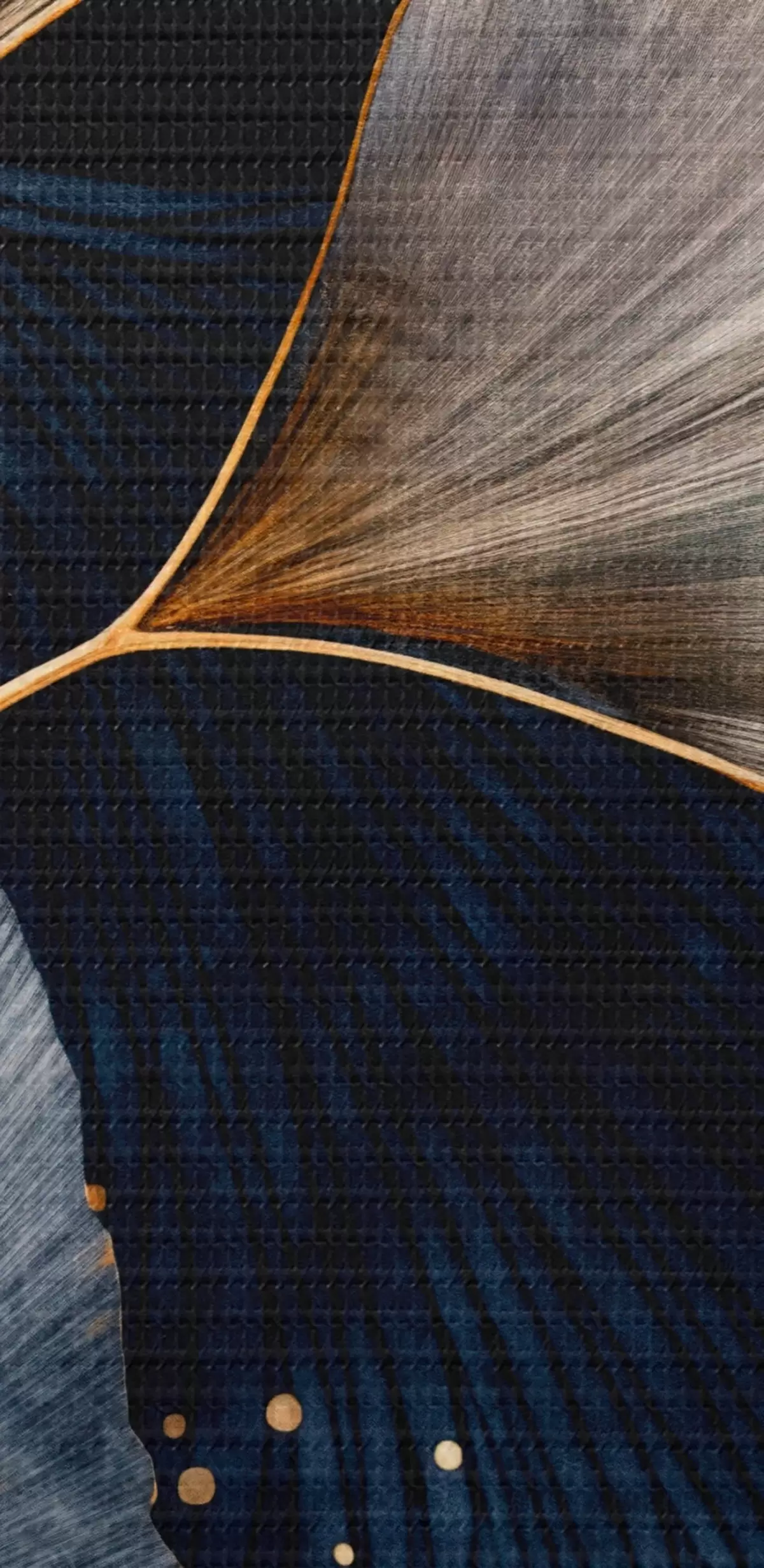 Schilderijen Ginkgo bladeren in gele en blauwe tinten, elegante donkere achtergrond, moderne kunst, minimalistische stijl, op de natuur geïnspireerd s44921