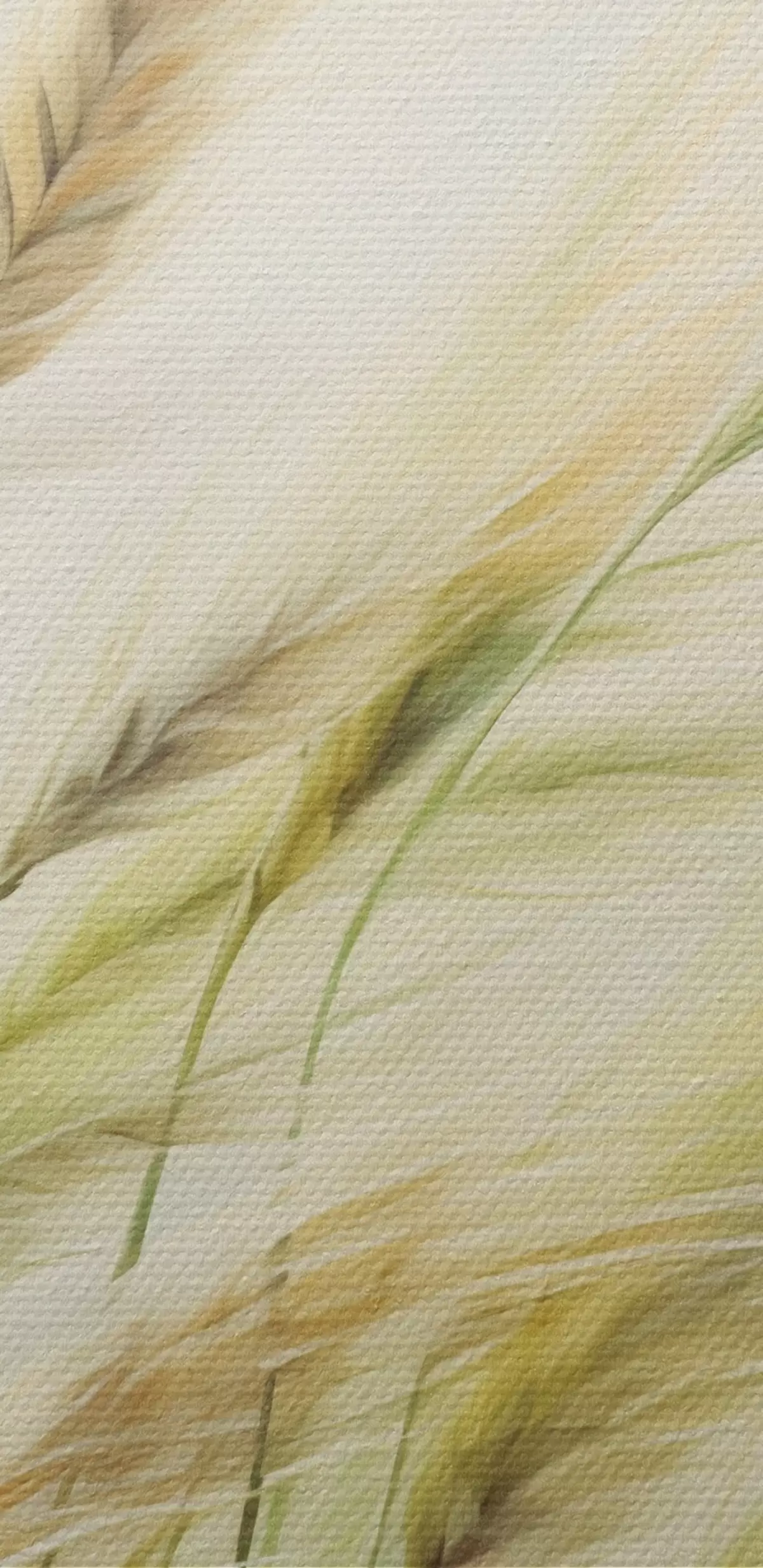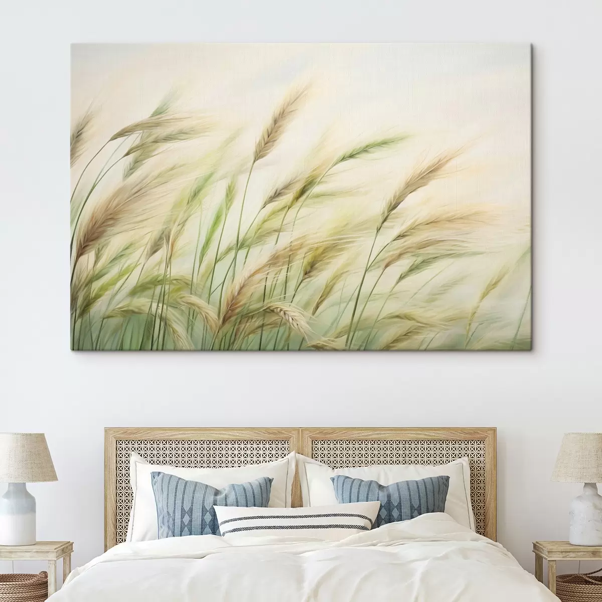 Schilderij Korenveld met gele en groene korenaren, zachte penseelstreken en een licht kleurenpalet, natuurlijke sfeer Art. s44923