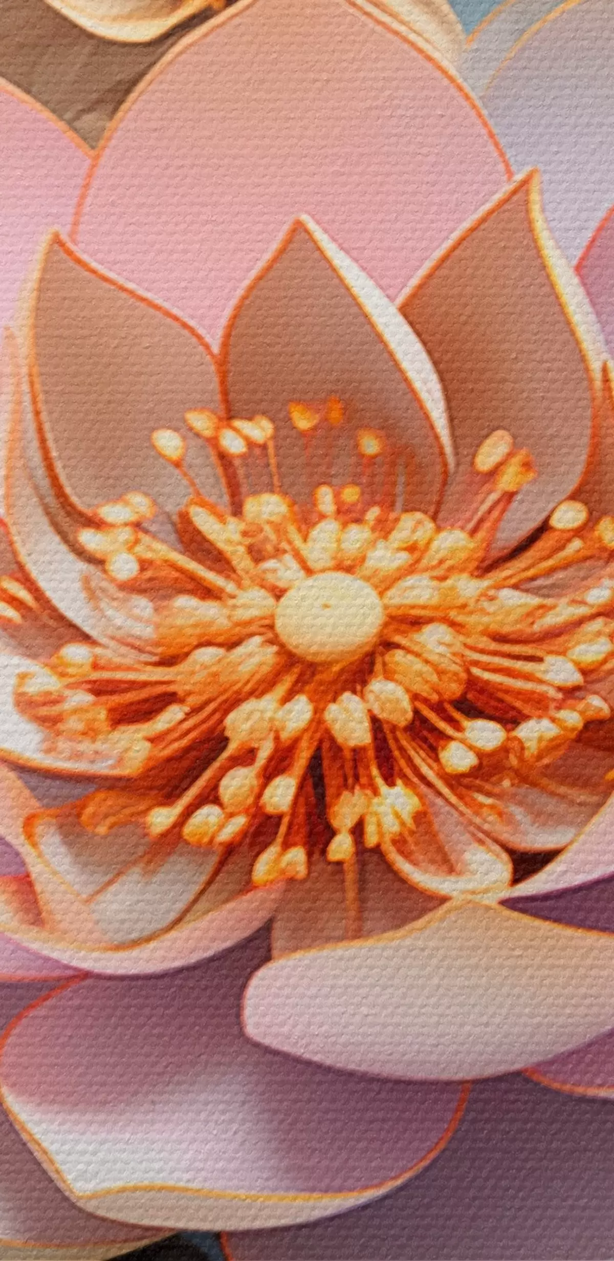 Schilderij Roze-oranje lotussen in 3D tekenstijl Art. s44934