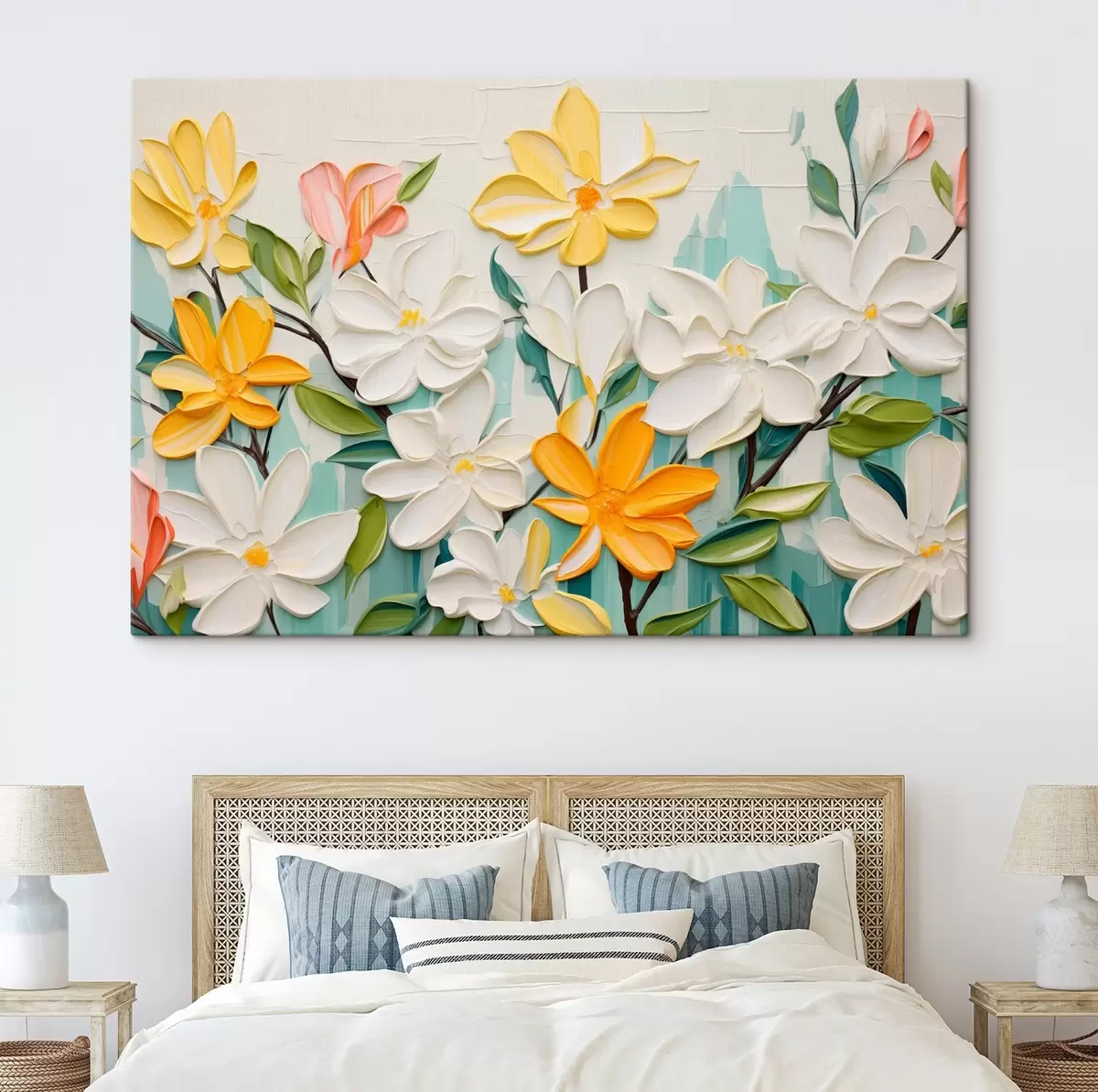 Schilderij Bloemen in reliëf in heldere kleuren in penseelstreekimitatiestijl Art. s44942