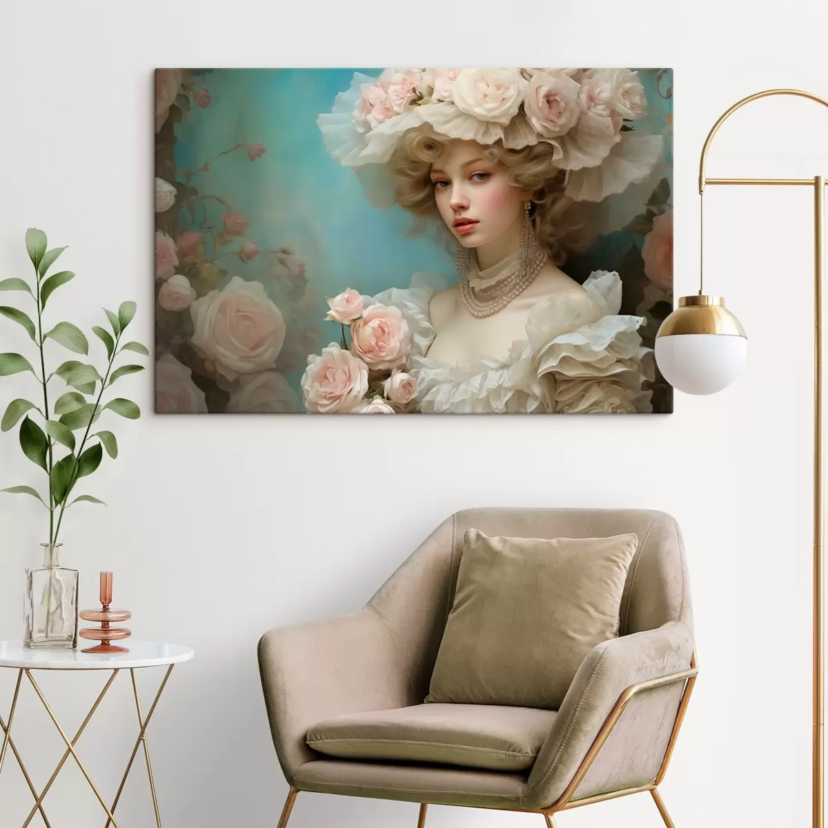 Schilderij Elegante dame in een hoed met bloemen in artistieke stijl Art. s44944