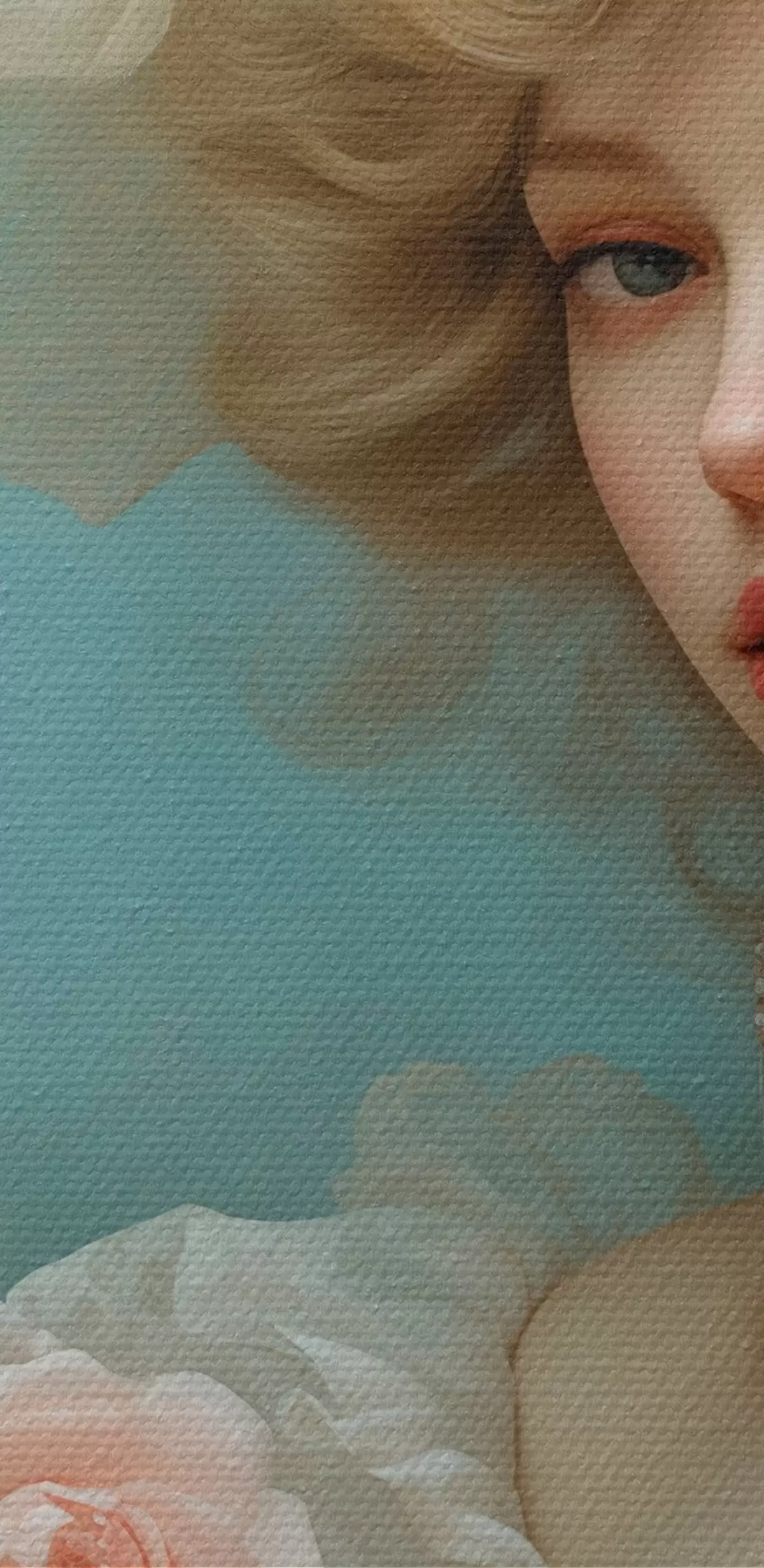 De fijne weving van draden op dit doek lijkt op het oppervlak van professionele schildersdoeken.