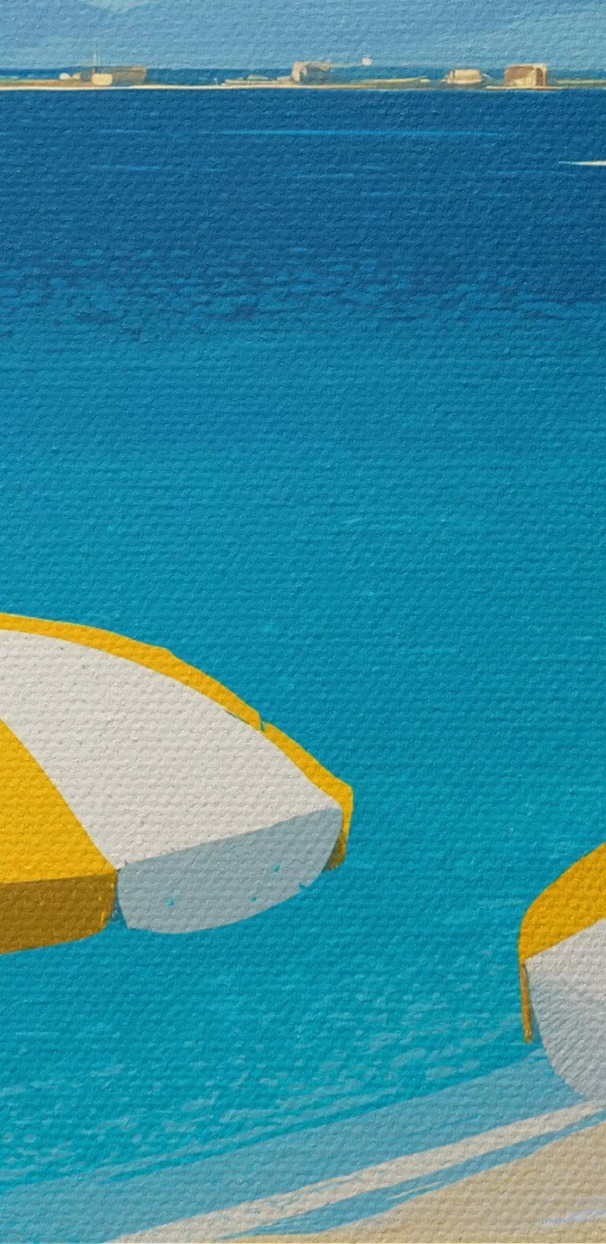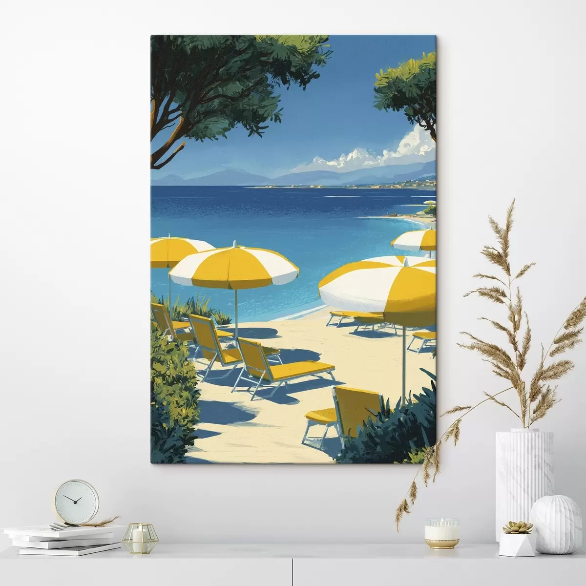 Schilderij Zomerstrand met parasols en bomen Art. s44974