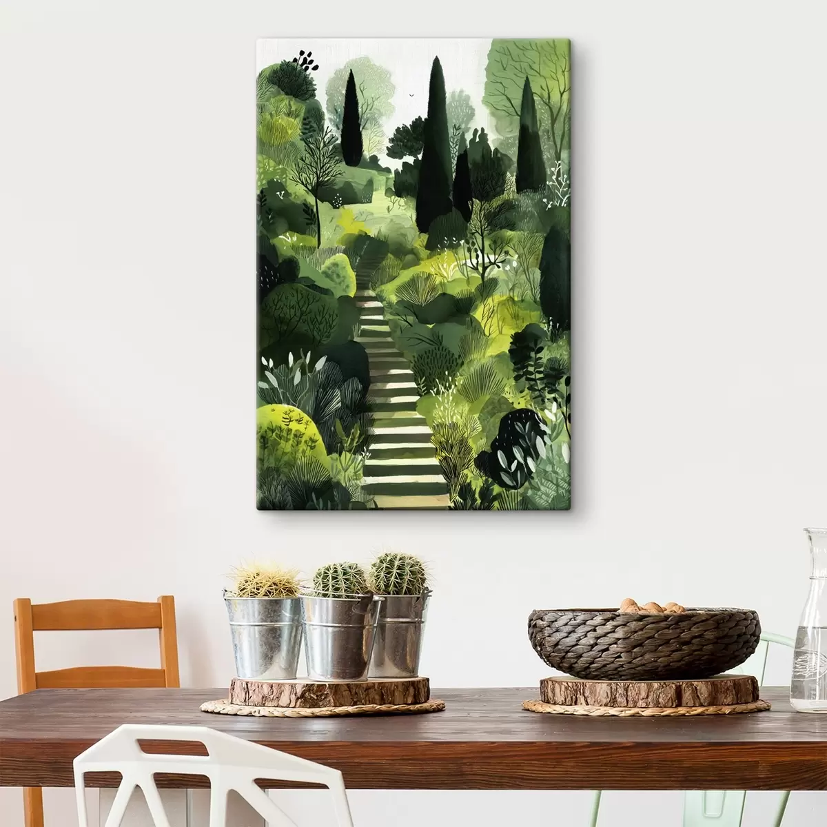 Schilderij Groene heuvels met bomen en struiken, betonnen trappen, weelderige kleuren Art. s44980