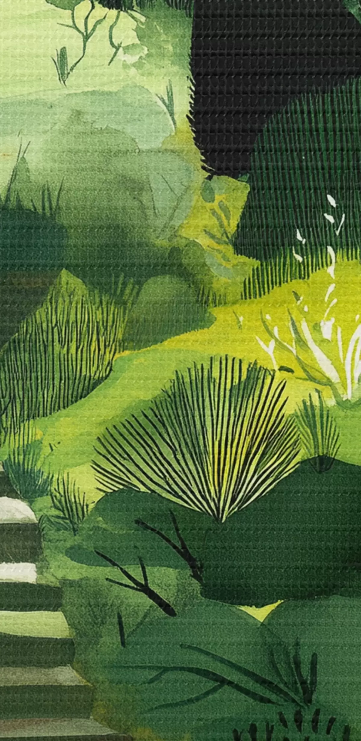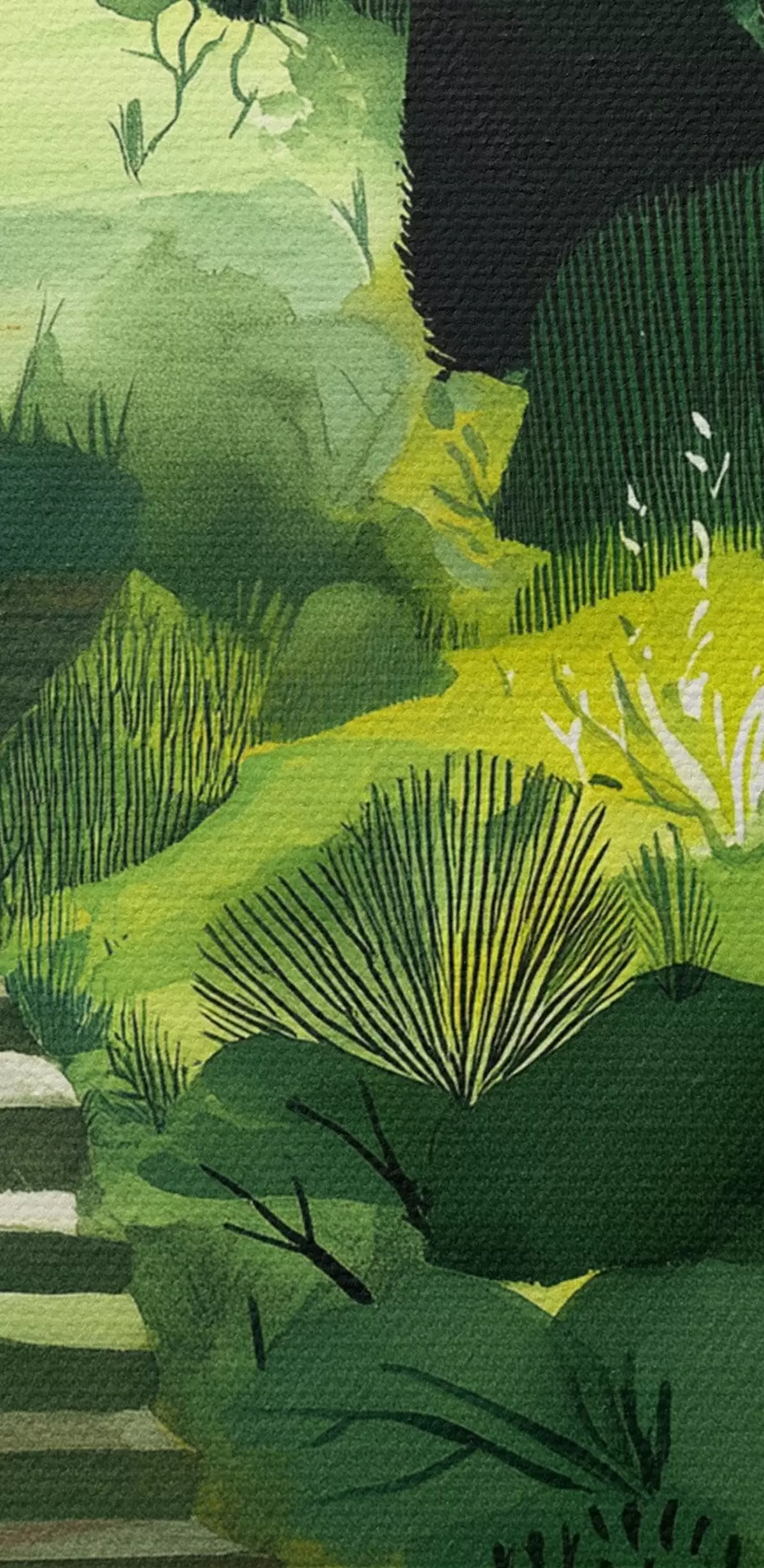 Schilderijen Groene heuvels met bomen en struiken, betonnen trappen, weelderige kleuren s44980
