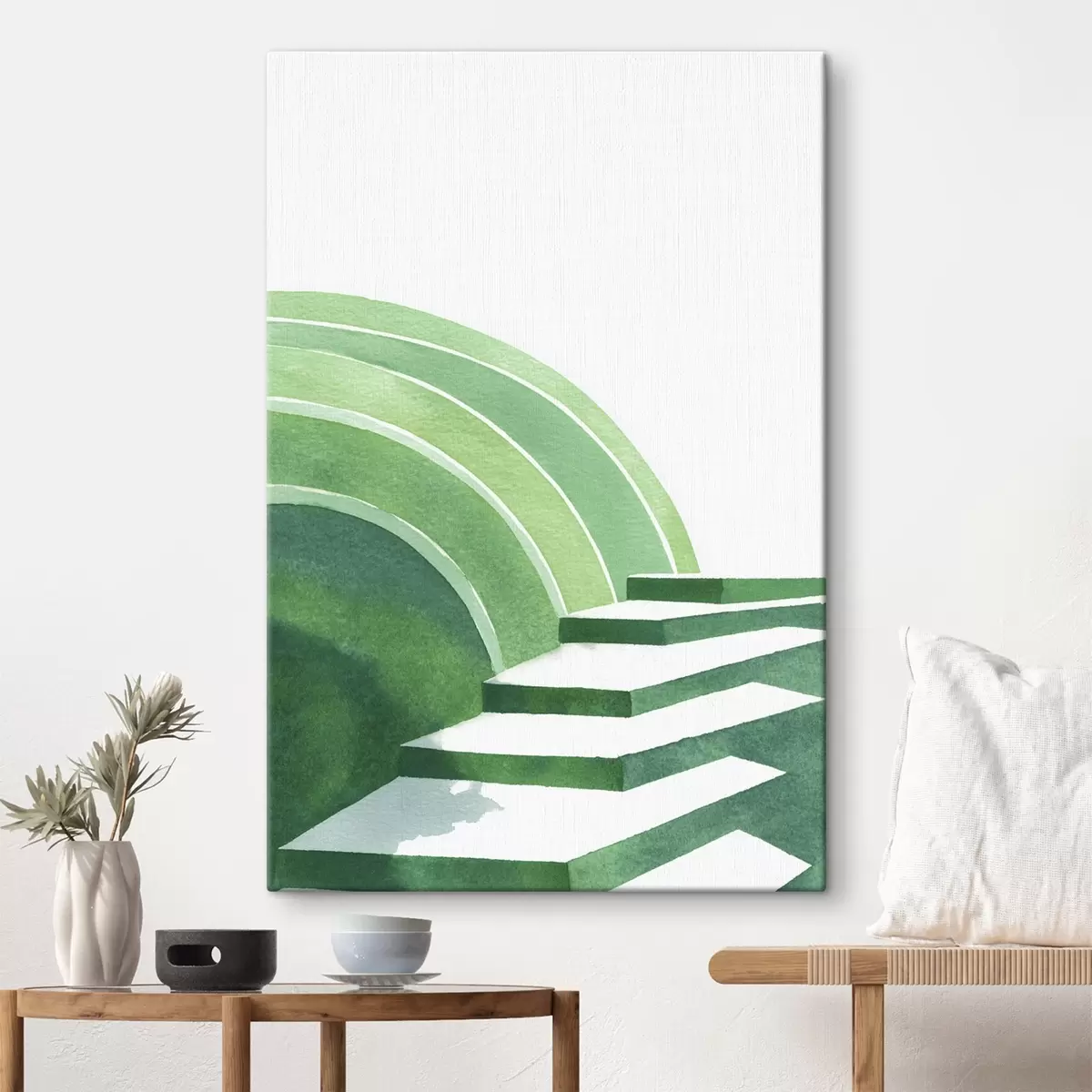 Schilderij Geometrische abstractie in groene kleuren, aquarelstijl Art. s44981