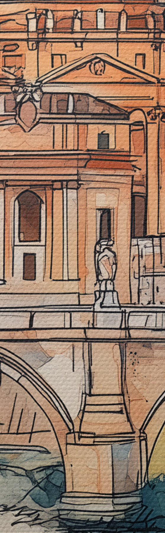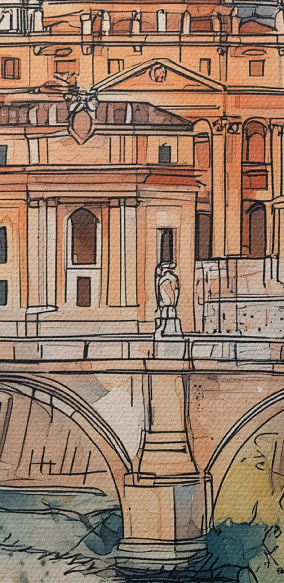 Schilderij Aquarel Rome stad, schets tekening, architectuur Art. s44983