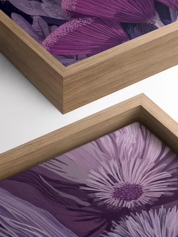 Schilderijen Bloemenontwerp in paarse kleuren, gedetailleerde tekening s44984
