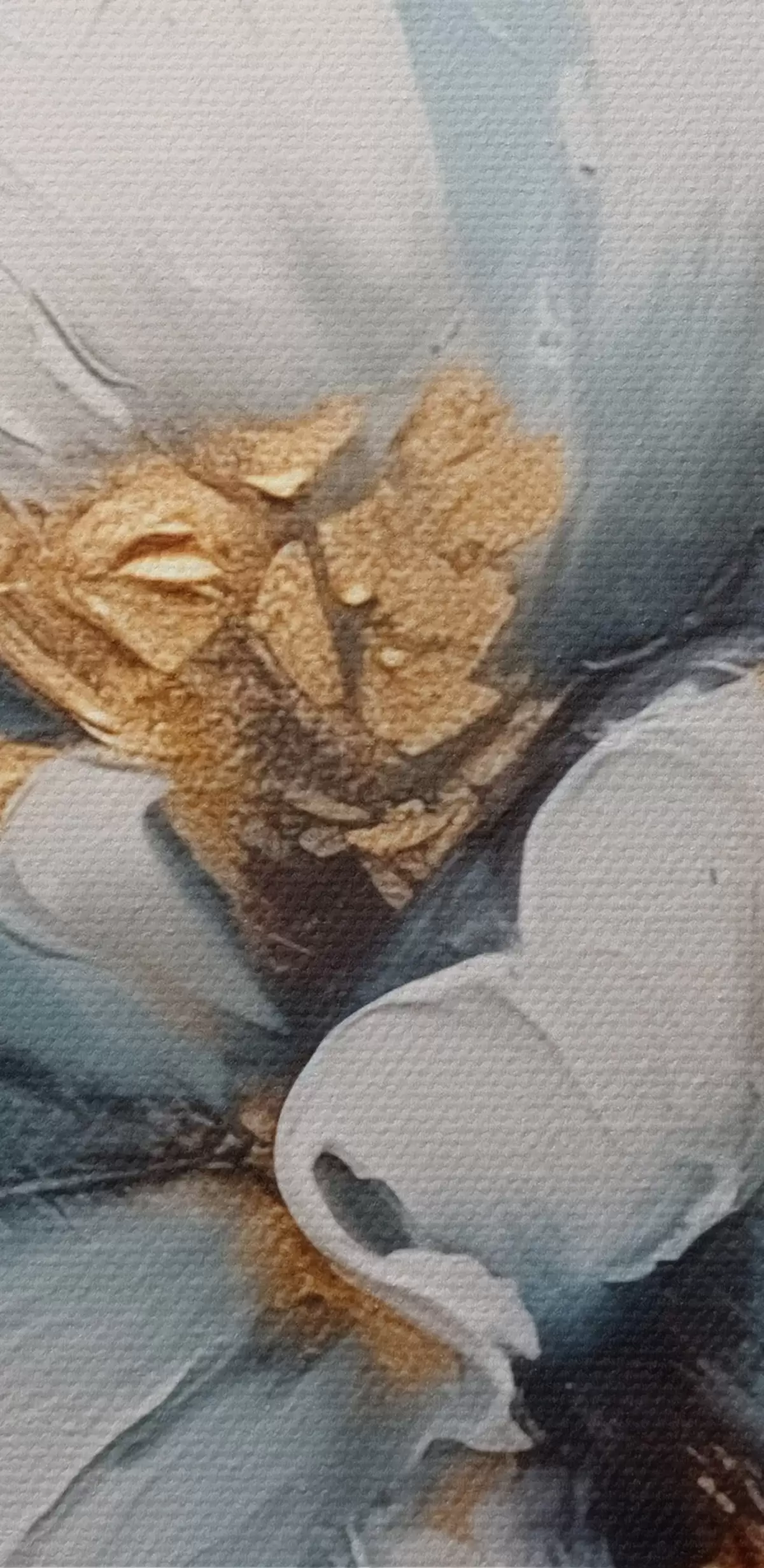 Het schilderij kan direct na ontvangst worden opgehangen. Het schilderij wordt opgespannen op een 2 cm breed houten spieraam.