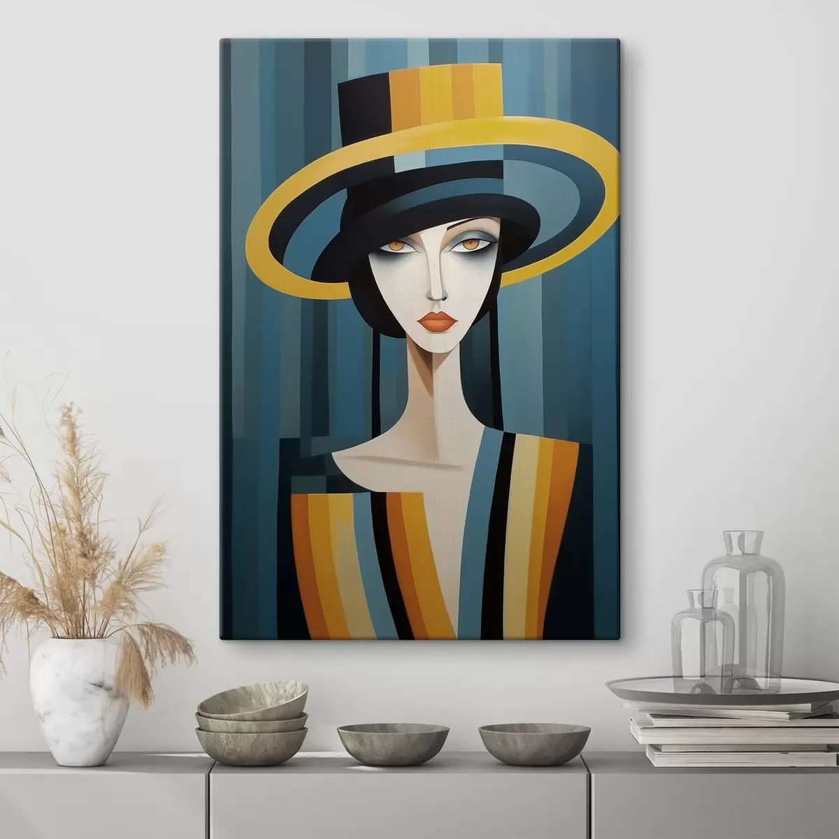 Schilderij Abstract portret van vrouw met hoed Art. s44990