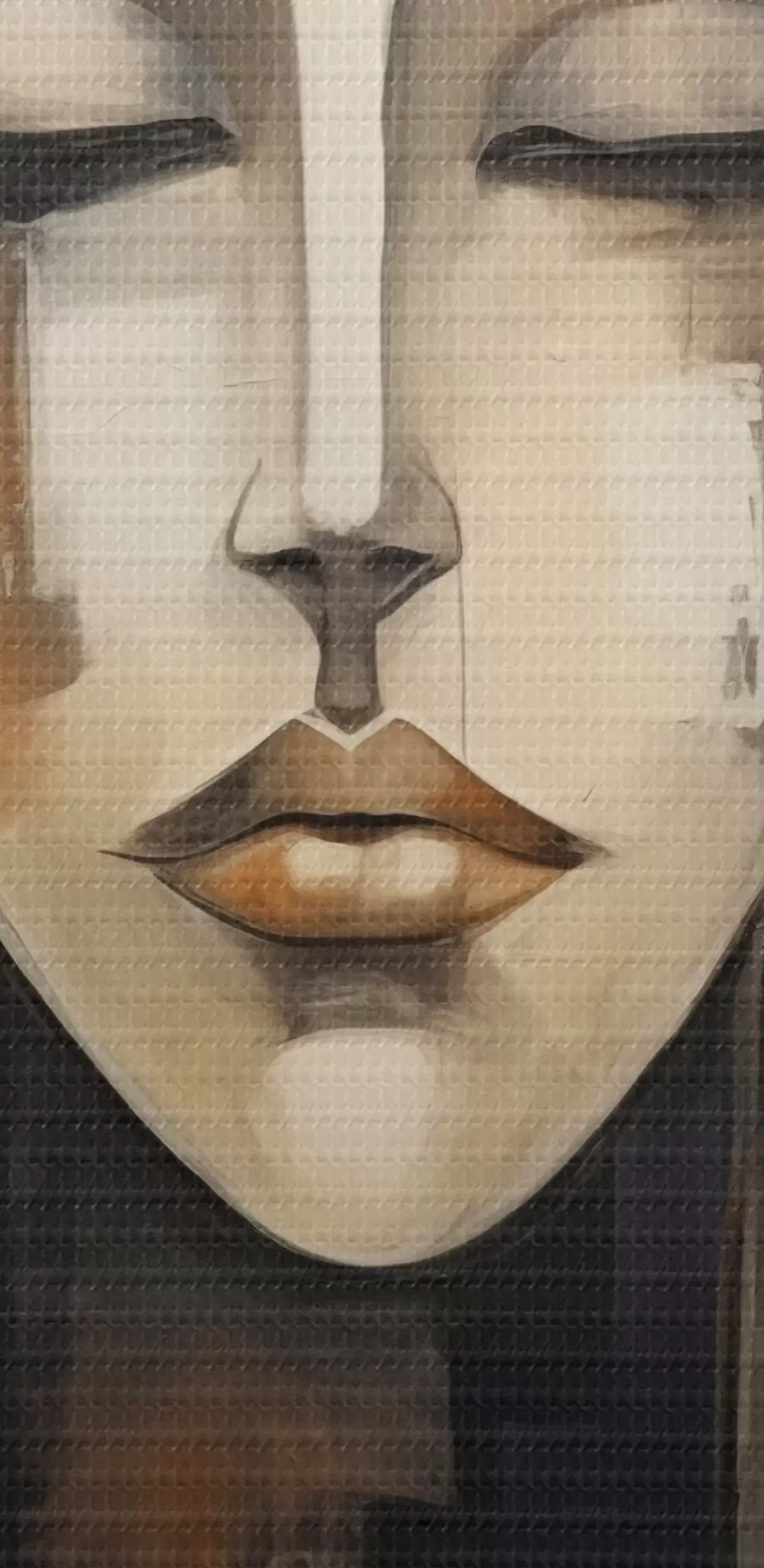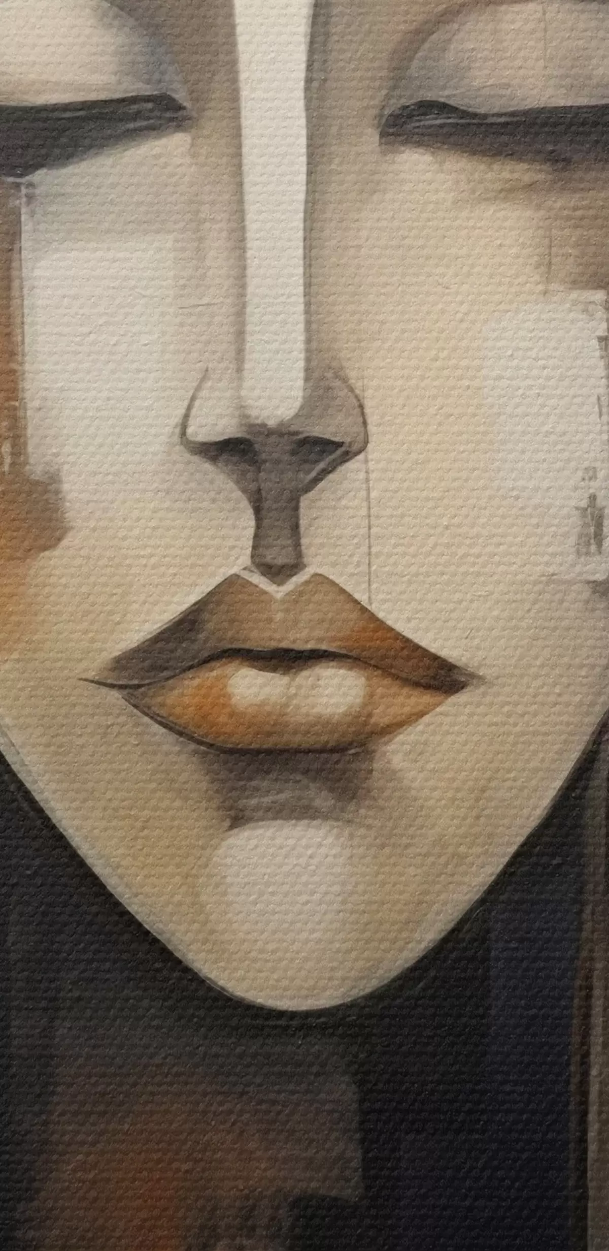 Schilderij Drie vrouwelijke gezichten met gesloten ogen in kubistische stijl Art. s45008