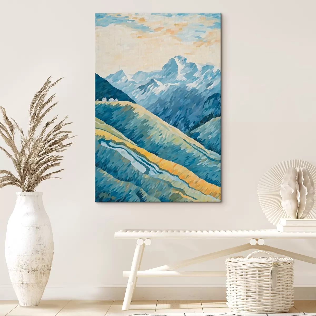 Je kunt het schilderij ophangen aan schroeven. Hiervoor leveren we bevestigingen bij onze foto's, zodat je de foto gemakkelijk kunt ophangen.