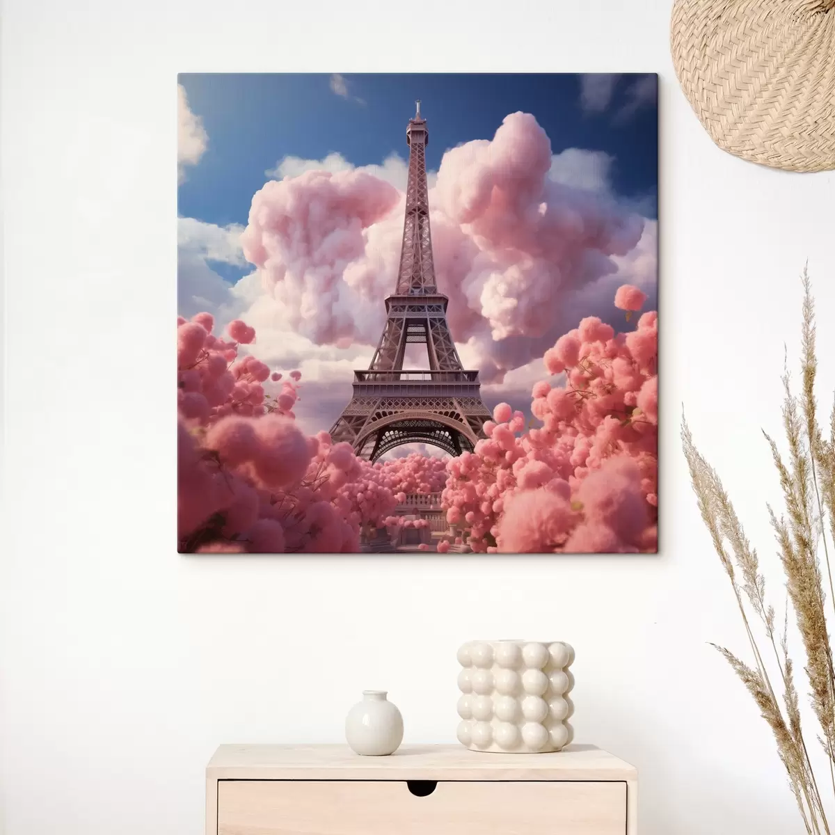 Schilderij Eiffeltoren in roze wolken in fantasiestijl Art. s45036