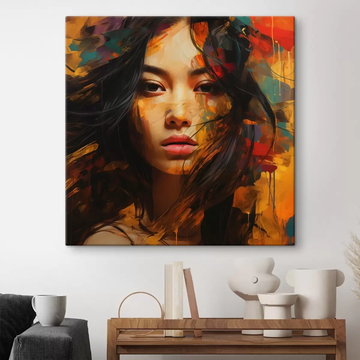 Schilderij Portret van een vrouw in abstracte kunststijl Art. s45039
