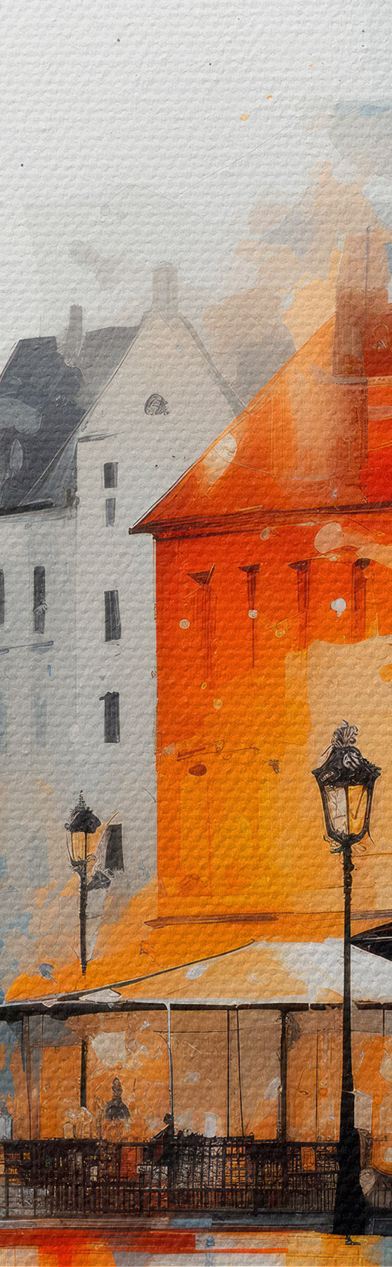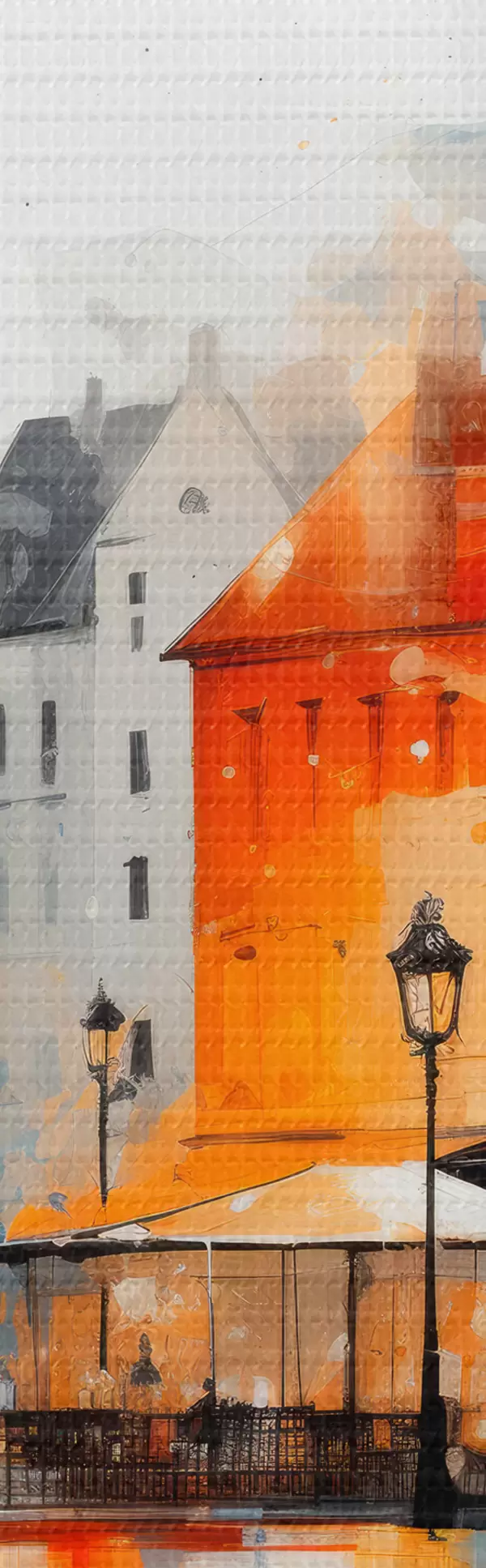 Schilderijen Straatbeeld met gebouwen en mensen in artistieke stijl s45050
