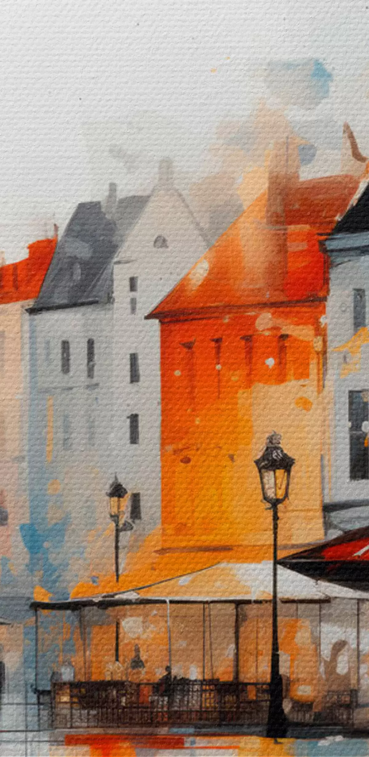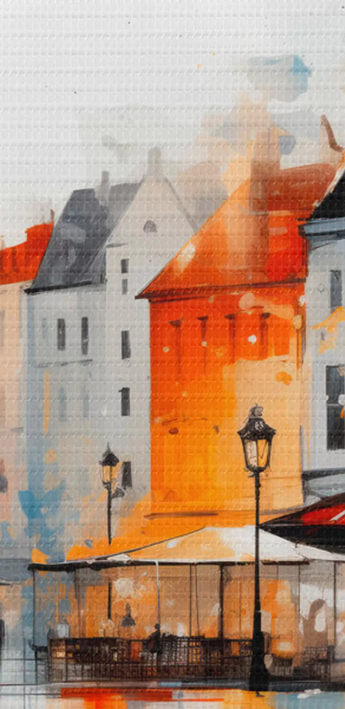 Schilderijen Straatbeeld met gebouwen en mensen in artistieke stijl s45050