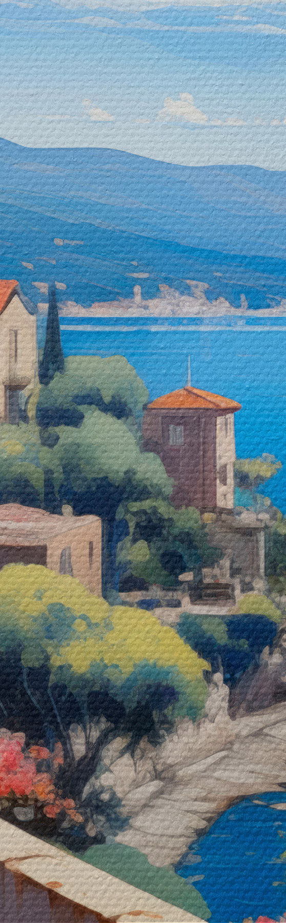 Schilderij Mediterraan landschap met bloeiend terras in artistieke stijl Art. s45053