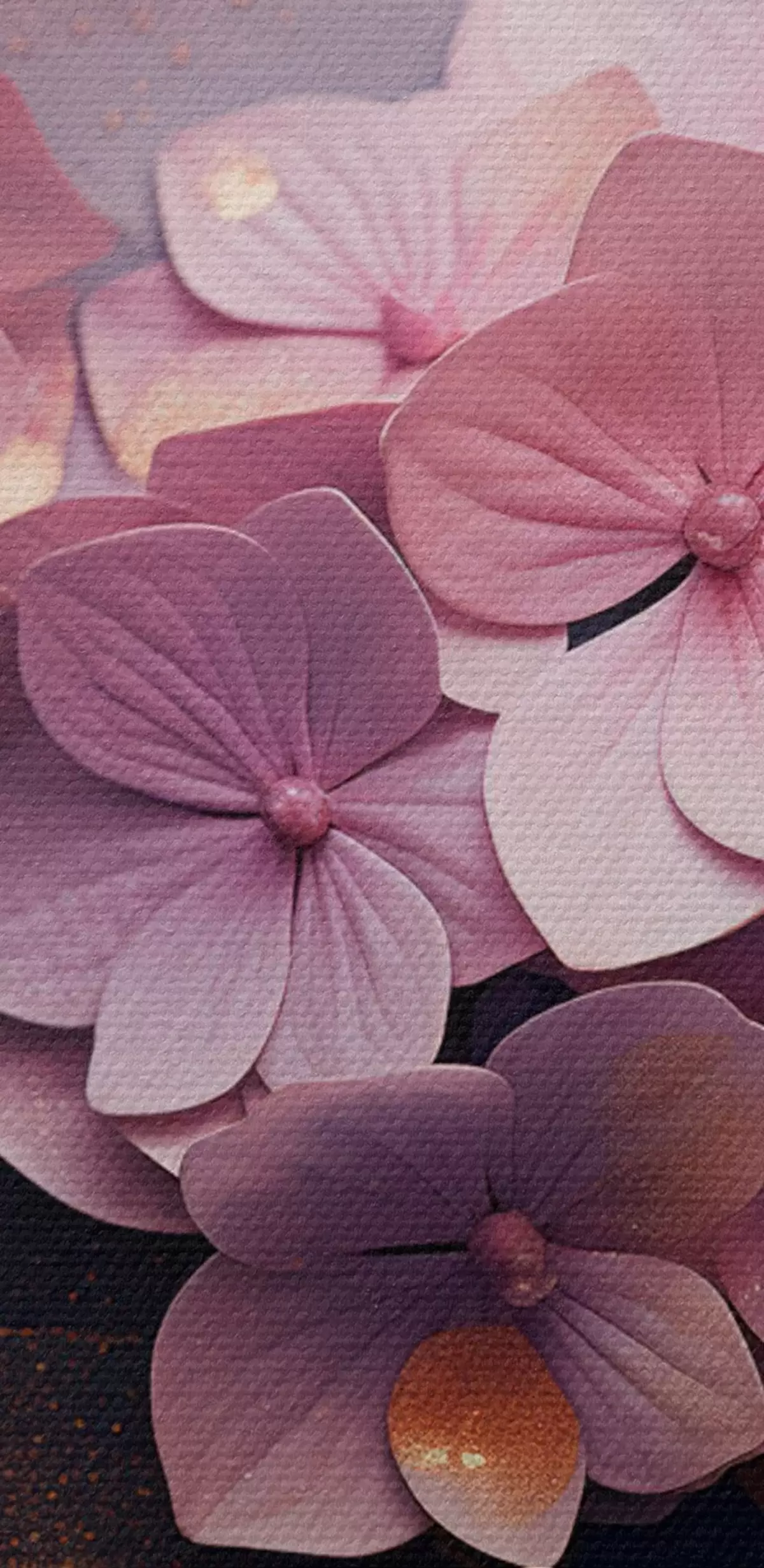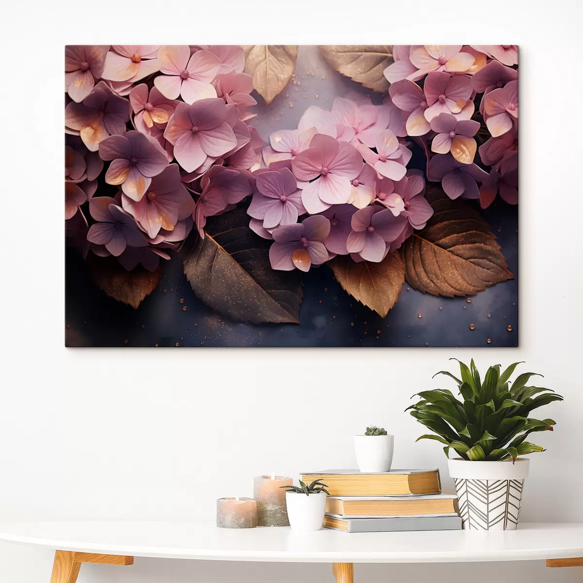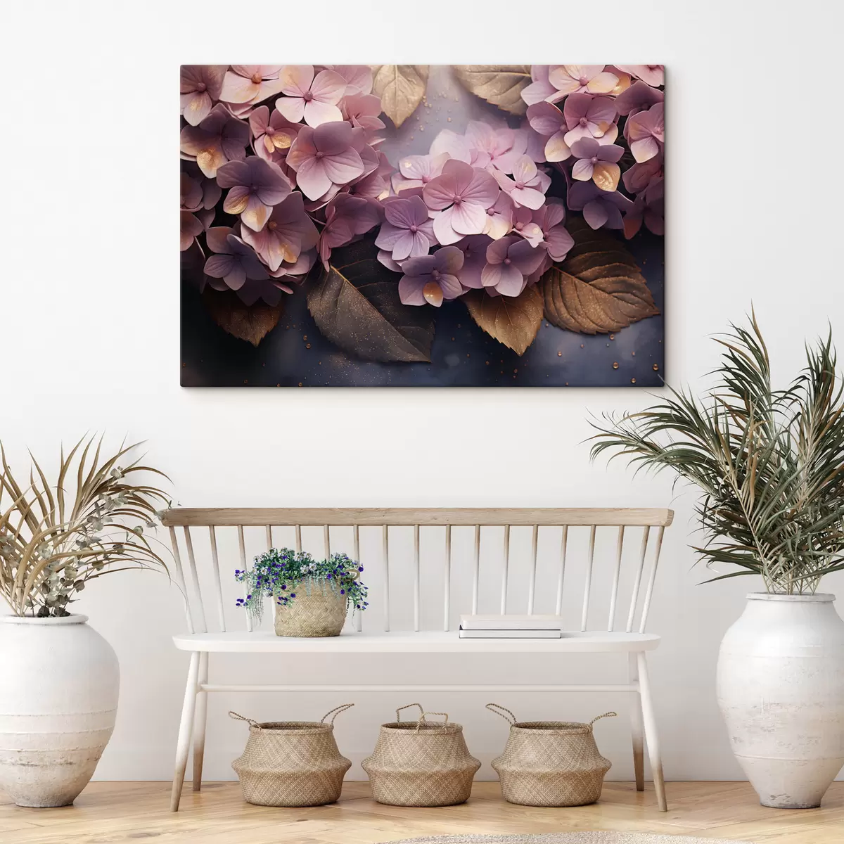 Schilderijen Weelderige roze hortensia's op een donkere achtergrond in schilderstijl s45054