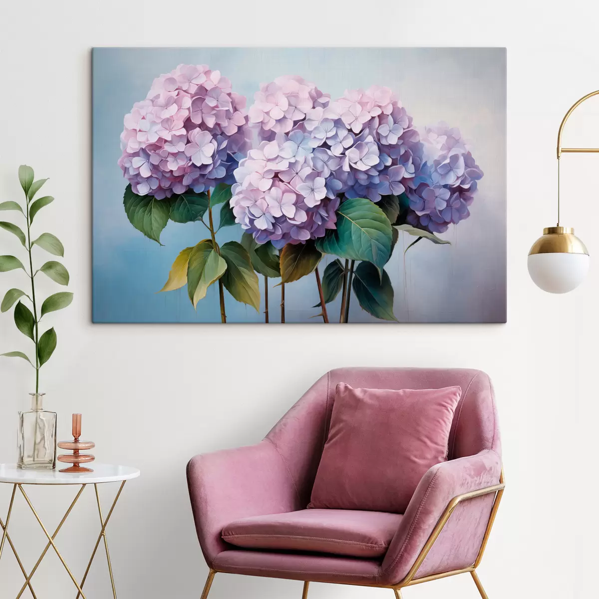 Schilderij Roze en lila hortensia's in schilderachtige stijl Art. s45055
