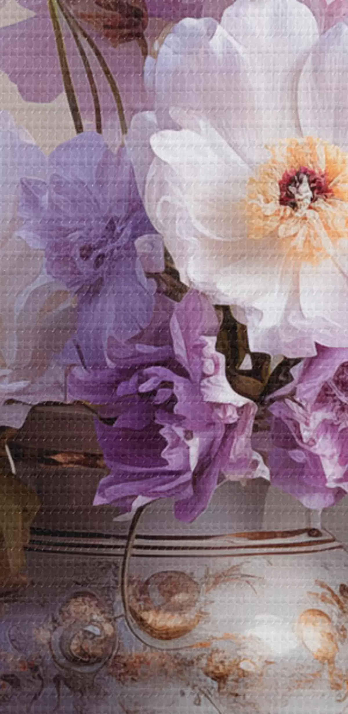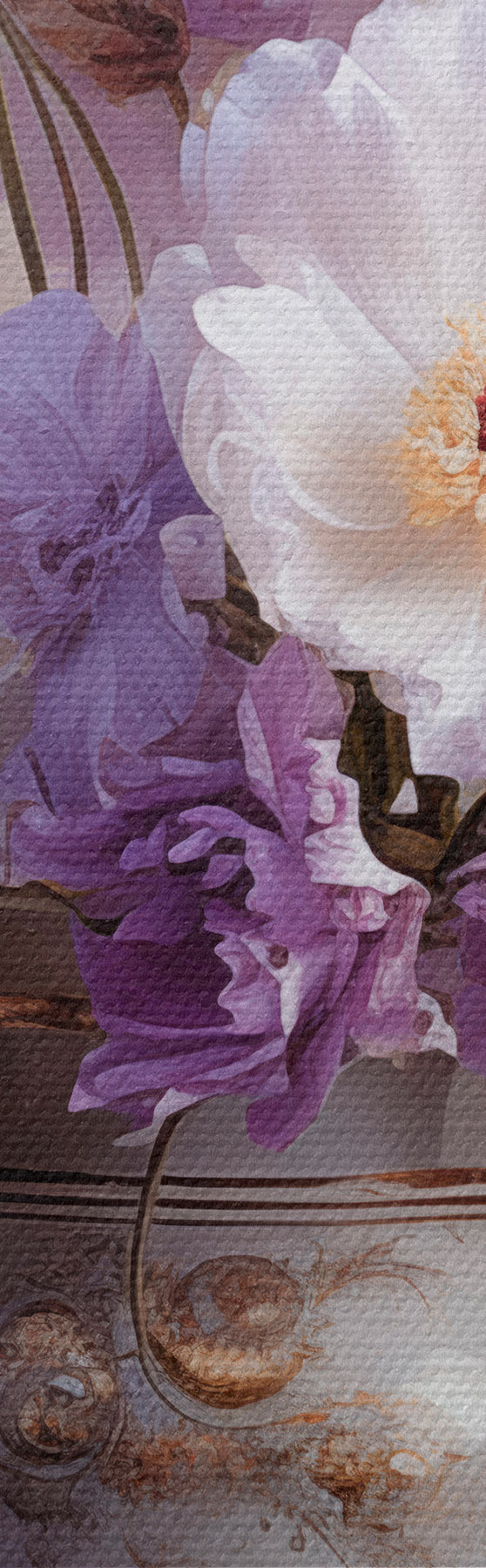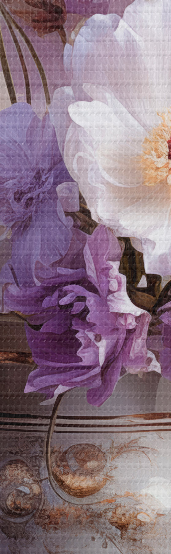 Schilderij Bloemstilleven: witte en paarse bloemen in artistieke stijl Art. s45058